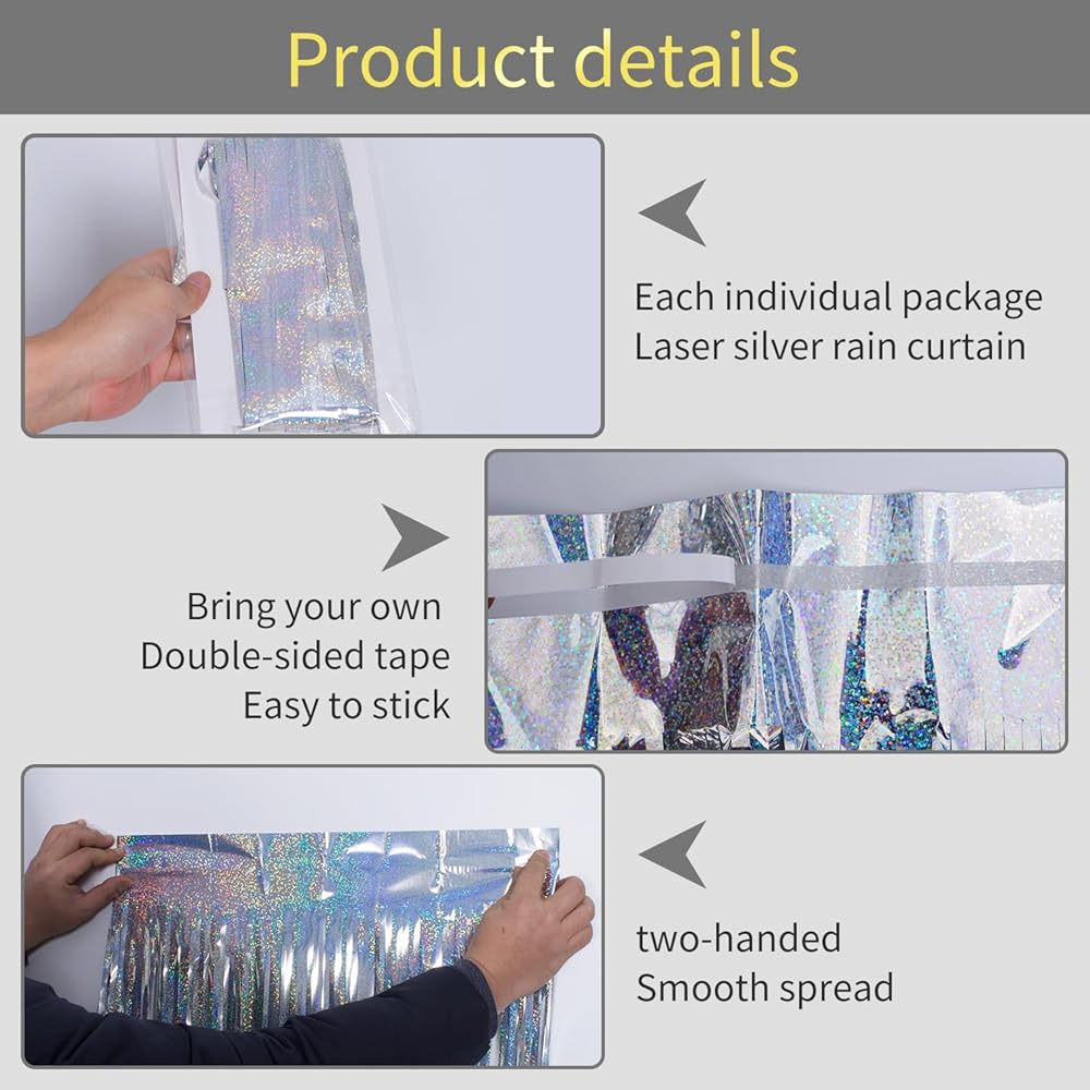 • 【ديكور حفلات متعدد الاستخدامات】: هذه الخلفية المتلألئة ذات الشراشيب مناسبة لديكورات الحفلات المختلفة. قم بتعليقها على الجدران أو النوافذ كخلفية آسرة أو ضعها على الباب لإنشاء مدخل جذاب للحفلة.