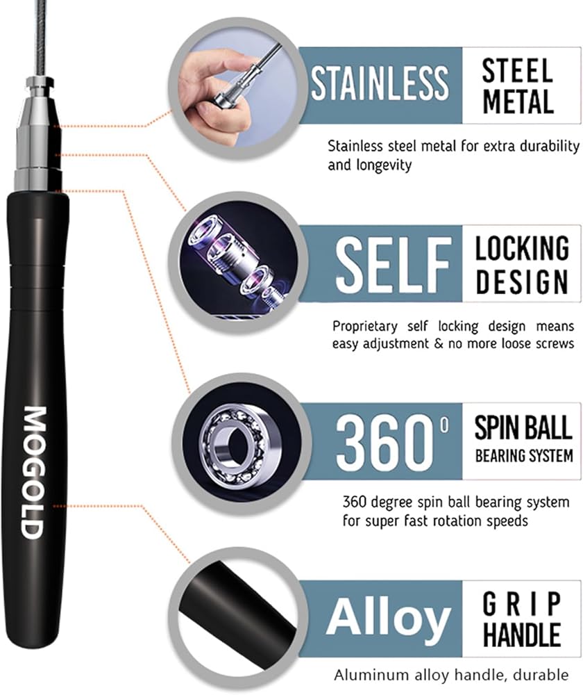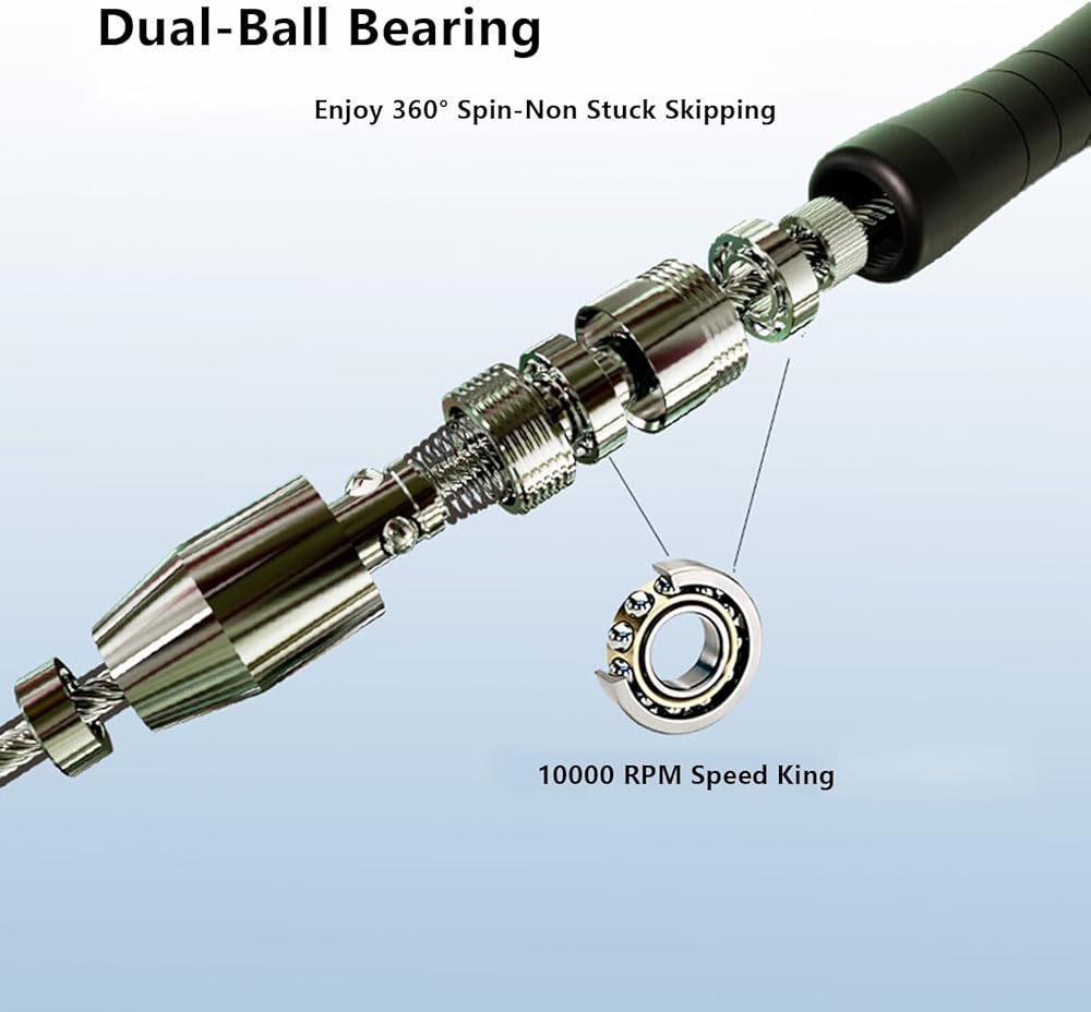 【حبل متين للغاية】 مصمم ليدوم طويلاً - يأتي T08 مع كابل سرعة مطلي بمادة PVC المعدلة بطول 9'10 بوصة، وسوف يتحمل التمرينات الثقيلة حتى في الظروف القاسية!