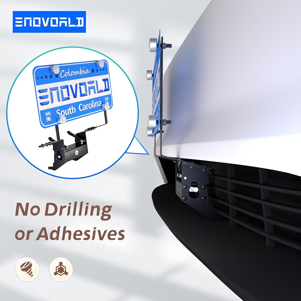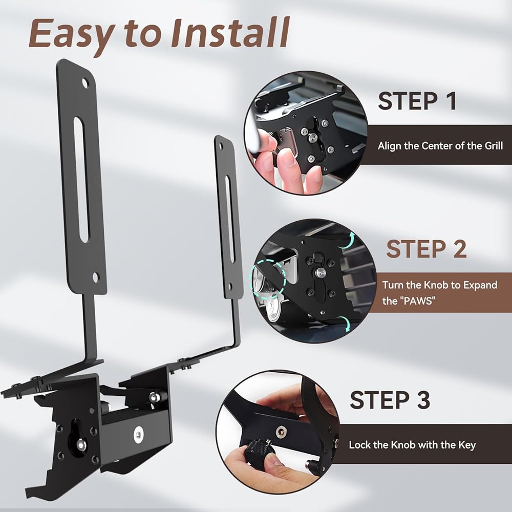 【سهل التركيب والإزالة】يحتوي إطار لوحة الترخيص على وظائف قفل وفتح سريعة. كل ما عليك فعله هو وضع إطار لوحة الترخيص في منتصف شواية سيارتك. تأكد من أن محدد الموقع الخلفي يمتد على الوريد العمودي المركزي. ادفع الحامل داخل الشواية حتى يتلامس. أدر المقبض في اتجاه عقارب الساعة لإشراك أقدام حامل لوحة الترخيص. قفل لمزيد من الأمان.