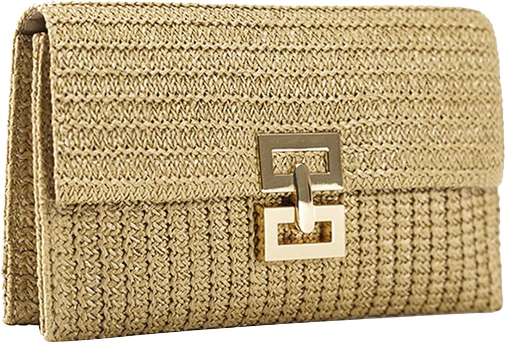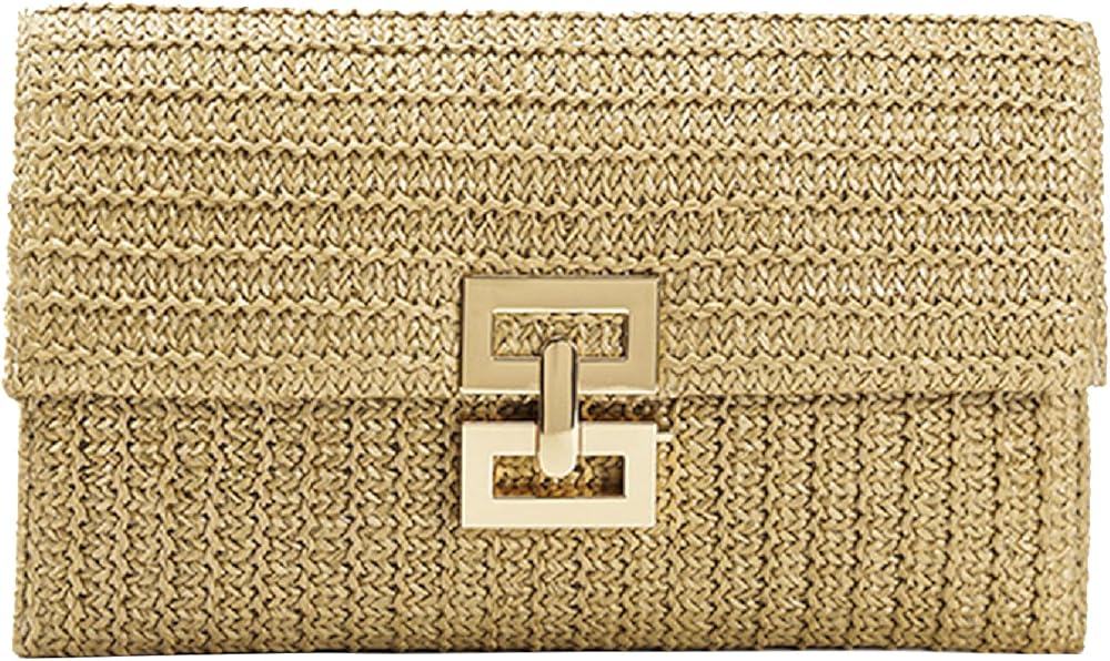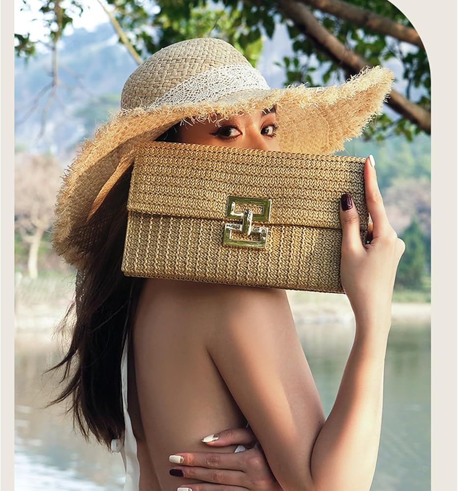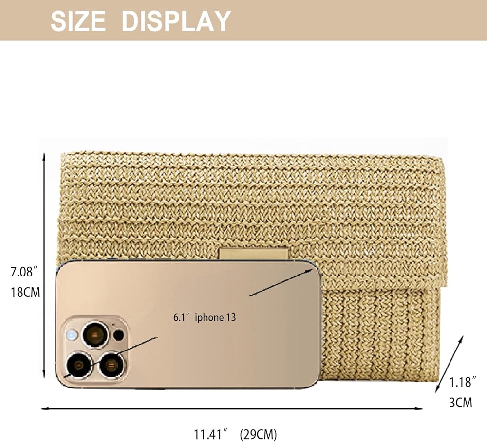【تصميم أنيق】 تصميم محفظة القش هذا مع إبزيم معدني لامع كامل الألوان، والذي يرمز إلى طريقة حياة بسيطة وأنيقة.