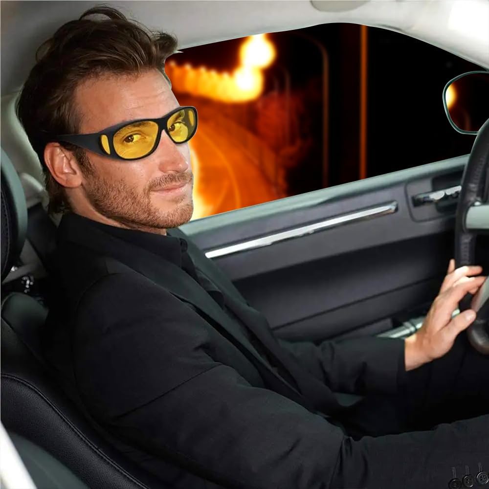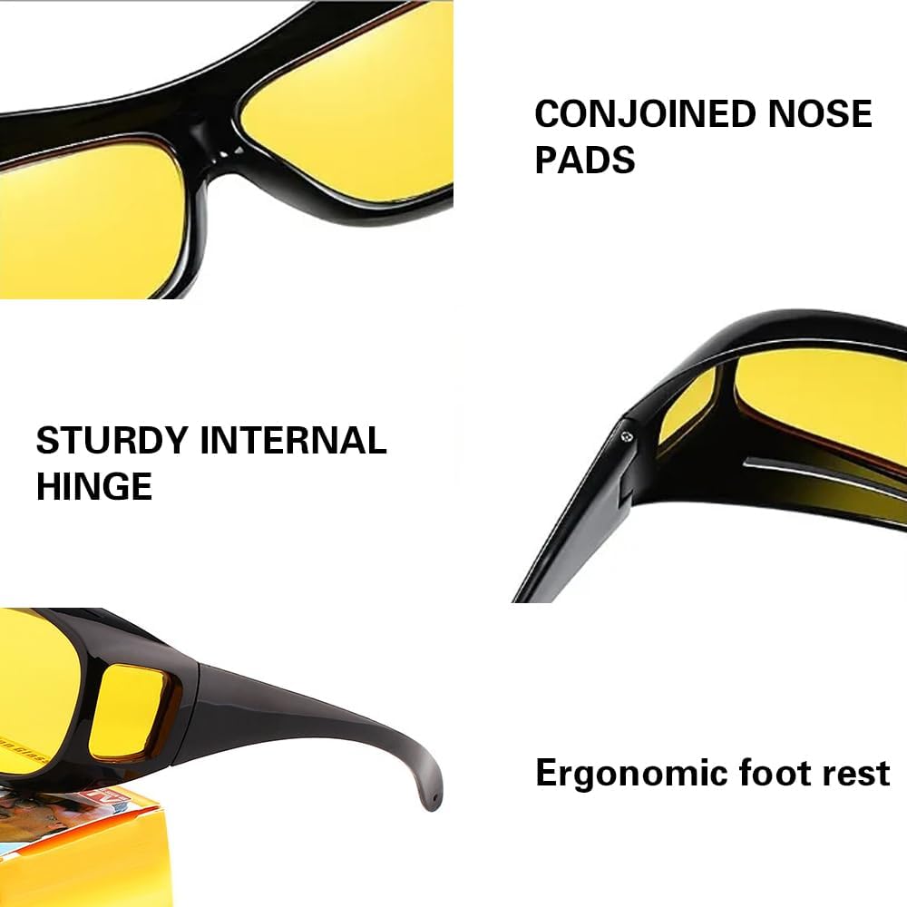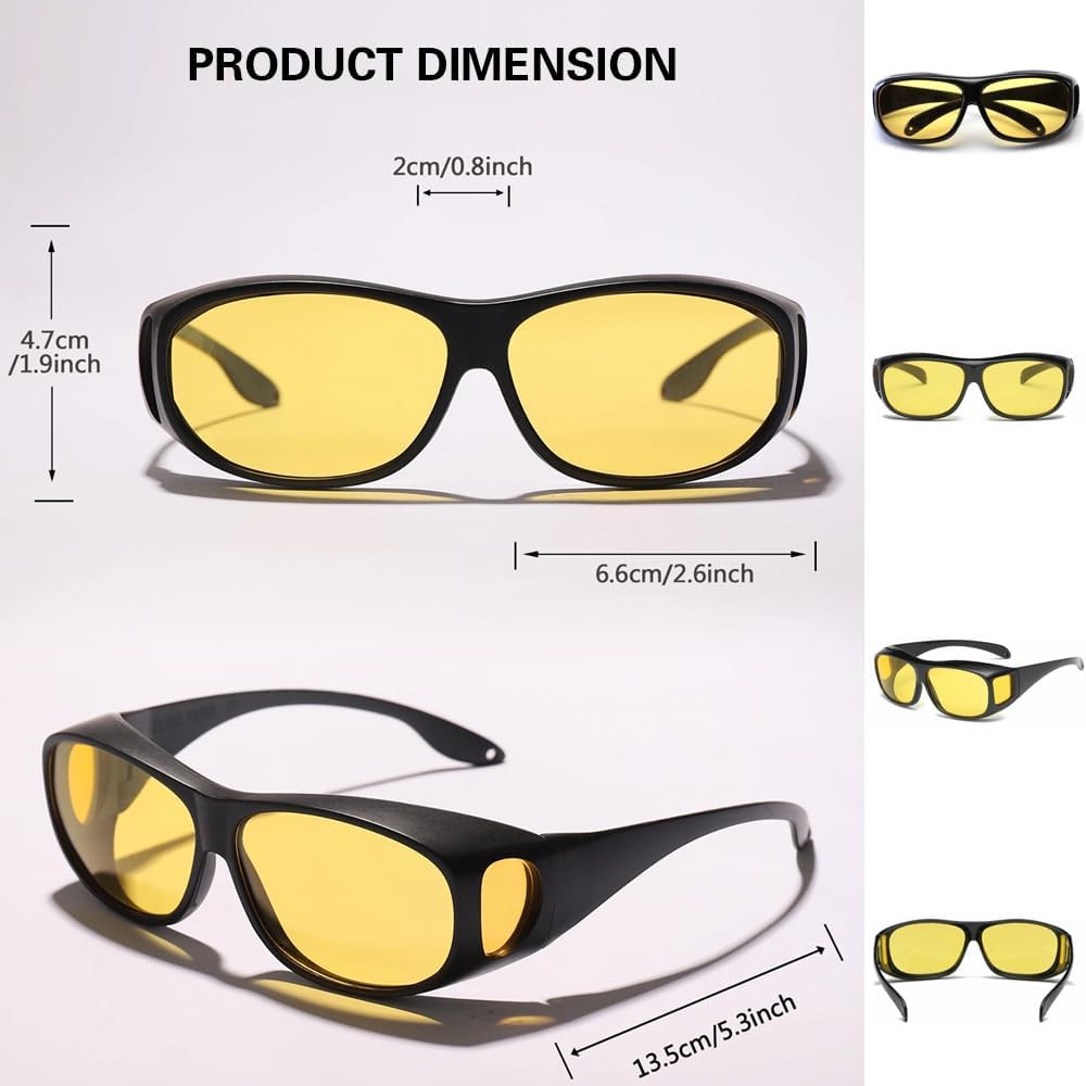 【FITS FOR WEARING OVER GLASSES】Night glasses for driving, designed to fit over the glasses sunglasses existing. Special sunglasses that fit over prescription glasses, easier to wear on