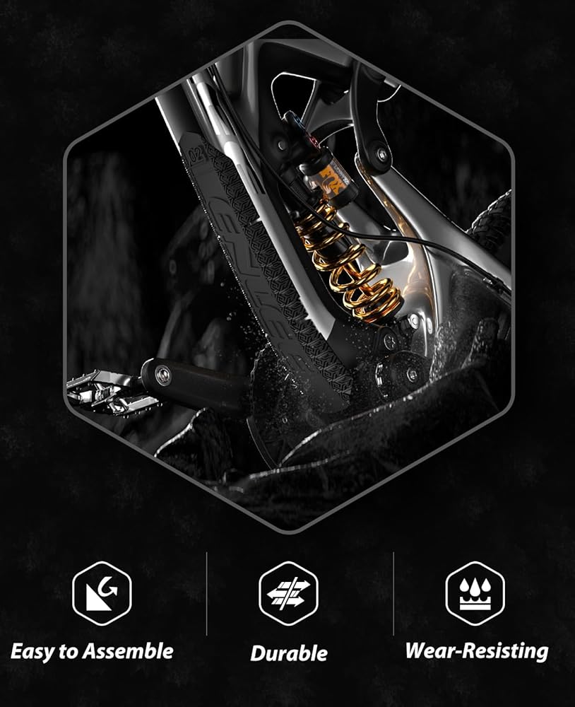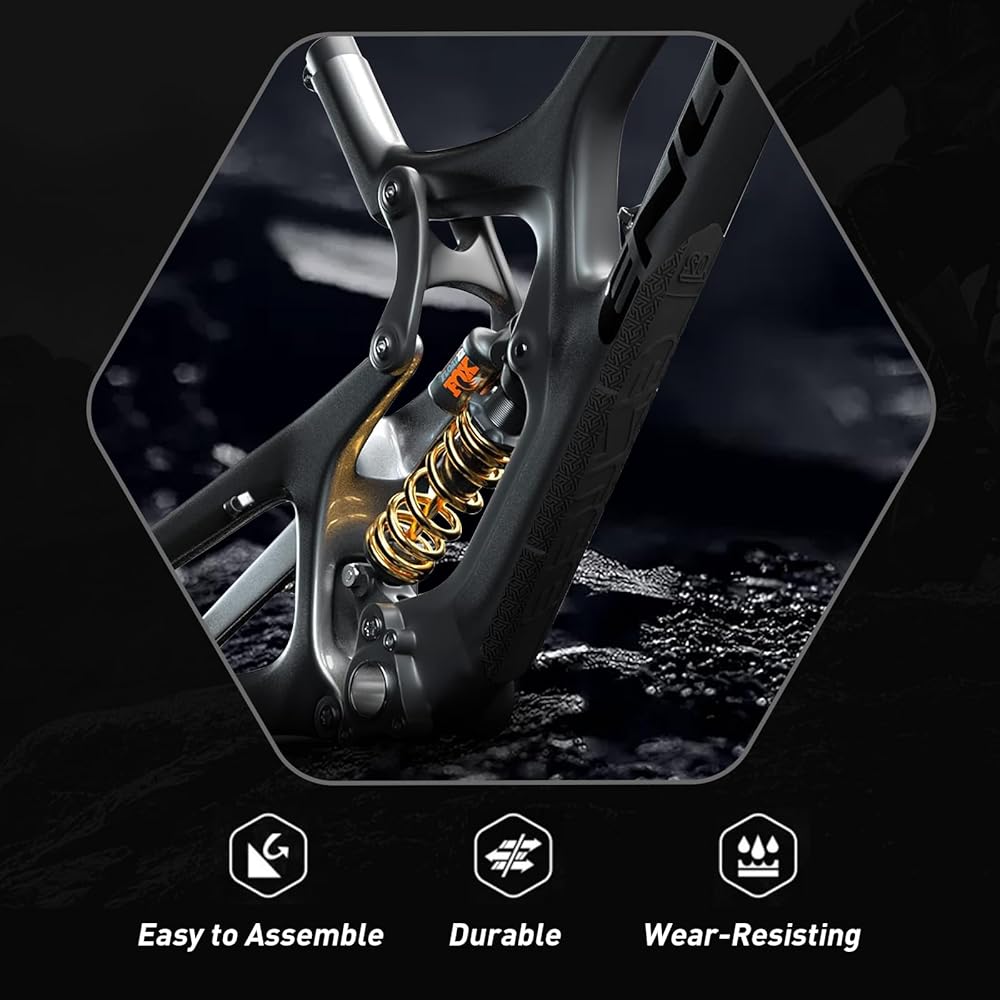 • Material: Made of high quality PVC, which has great tear resistance, scratch resistance, effectively resist the impact of flying stones during cycling to prevent the breakage damage caused by small debris, in the face of accidental scratches or violent collisions, still tough, to ensure that the frame is free from damage, long as new.
