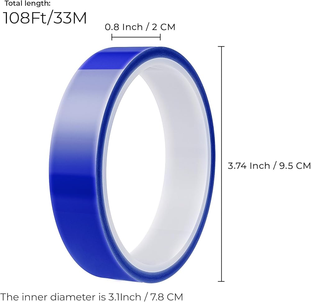 EENOUR 4 بكرات 0.8 بوصة × 108 قدم شريط مقاوم للحرارة، شريط حراري بدرجة حرارة عالية، يصل إلى 250 درجة مئوية (482 درجة فهرنهايت) للضغط على الفراغات التسامي وفينيل نقل الحرارة (HTV) - 432 قدم بشكل عام