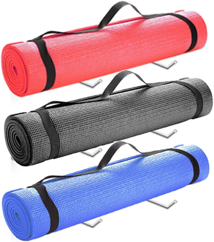 6 قطع/3 مجموعات من حامل سجادة اليوجا، تخزين بساط اليوجا على الحائط، ملحقات صالة الألعاب الرياضية المنزلية لتعليق الأسطوانة الإسفنجية وأشرطة المقاومة في صف اللياقة البدنية أو صالة الألعاب الرياضية المنزلية