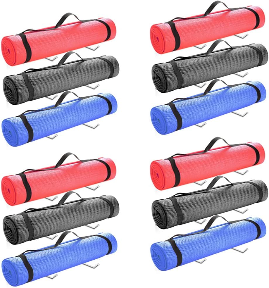 Yoga Mat Organizer: Hanging your yoga mats, gym mats, yoga blocks, yoga towel, yoga strap, jump rope on the yoga mat holder. It is a great way to store your yoga accessories.
