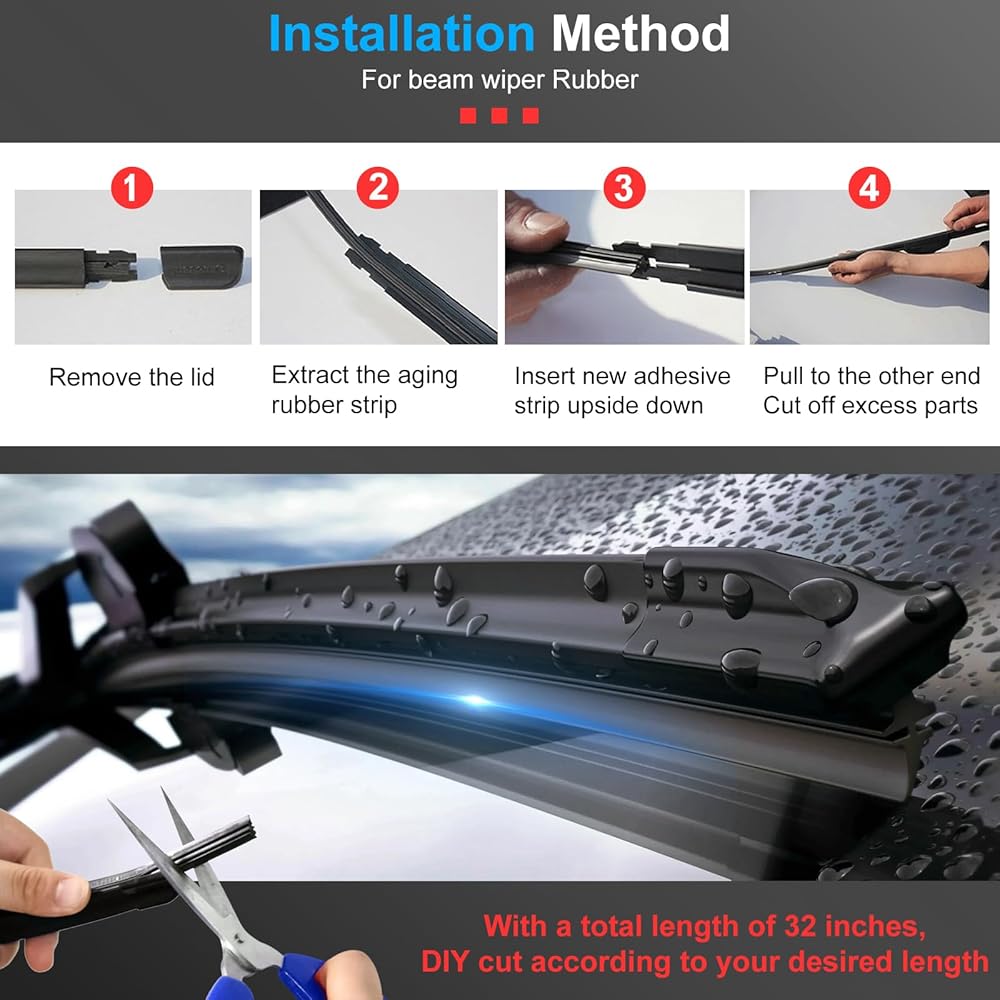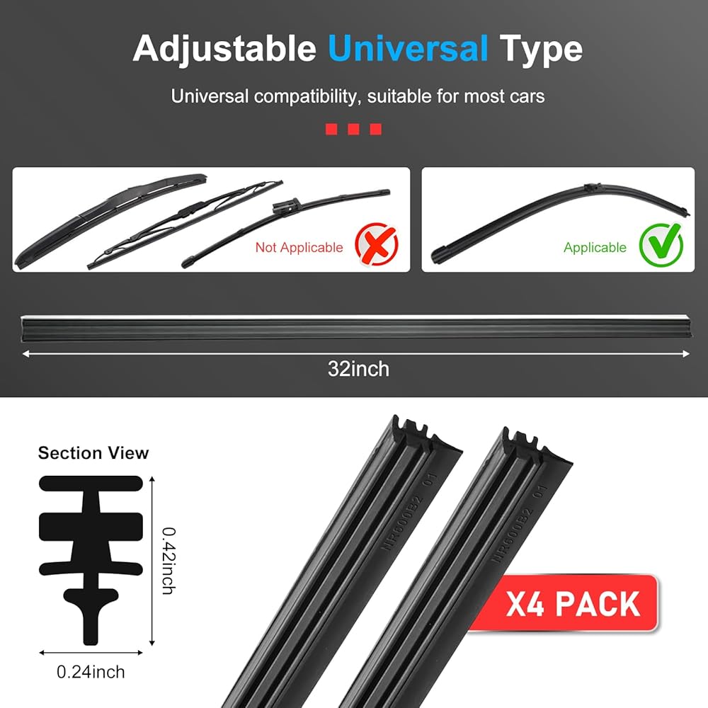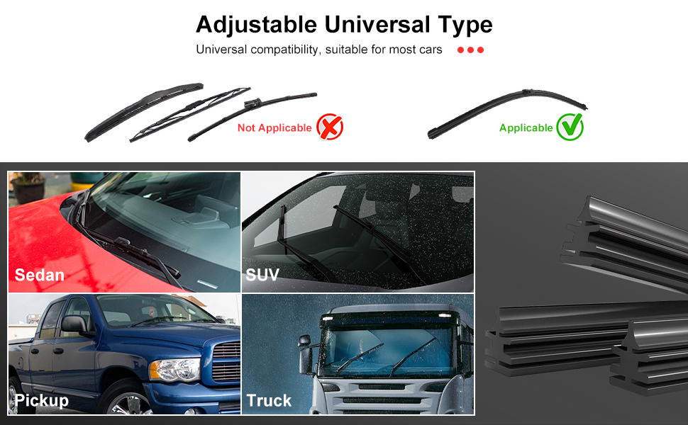 تصميم قابل للتعديل بنفسك: تتميز عبوات شفرات الممسحة هذه بملاءمة عالمية وتركيب قابل للتعديل بنفسك، مما يسمح لك بتخصيص الطول ليناسب حجم الزجاج الأمامي الخاص بك بدقة للحصول على كفاءة المسح المثالية.