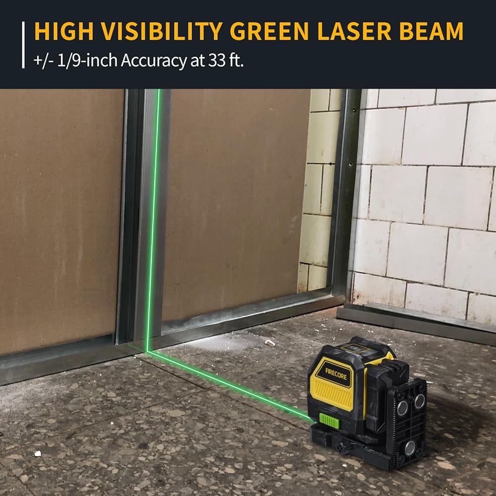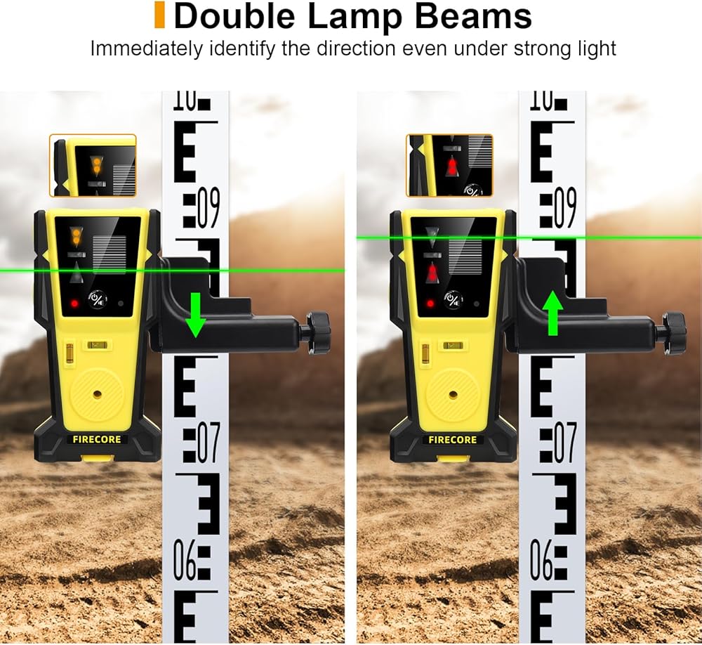 مستوى الليزر مع جهاز الاستقبال، ليزر Firecore Green Beam ذاتي التسوية بالليزر ومجموعة كومبو لجهاز استقبال الليزر FD30، نطاق كشف خط الليزر يصل إلى 197 قدمًا للبناء الخارجي، يتضمن مشبكًا وبطارية