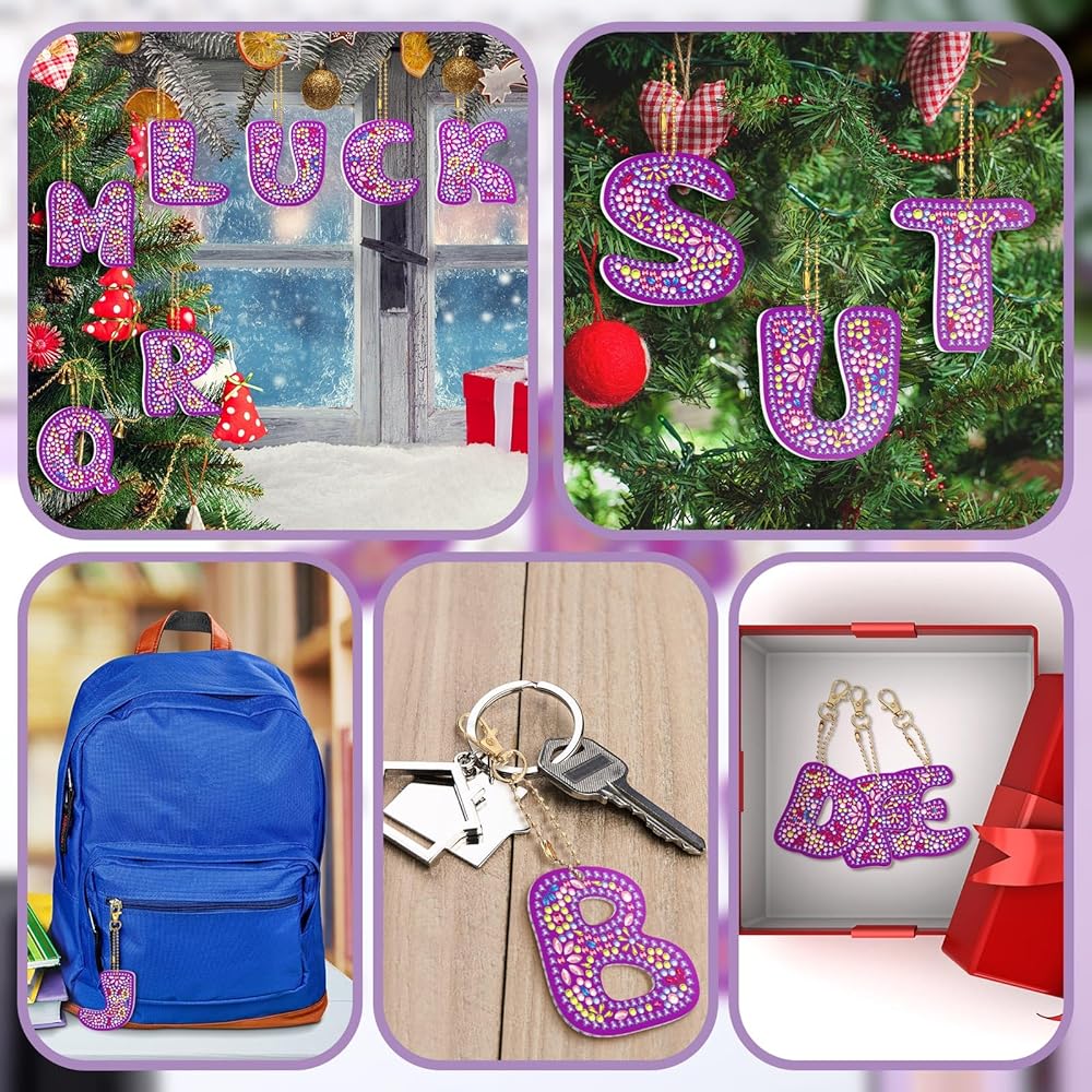 Give these 26 letters diamond painting key chain mosaic making kits as ideal gift on special occasions to your family, friend or coworkers, adding a fashionable and cute touch. The process of making diamond painting keychains can help people relieve stress and anxiety and improve their mental health.