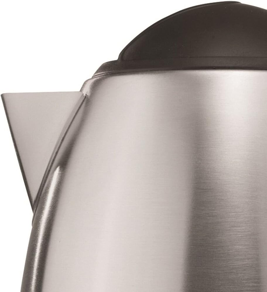 Heat water faster and more efficiently than a microwave with this 1.2 liter electric tea kettle finished in brushed stainless steel for a classic look. Featuring an illuminated power indicator and boil dry protection for safety. This electric tea kettle is ideal for a quick cup of tea or coffee with it's handy lift-off kettle allows for cord-free use and it's small enough to fit on a kitchen countertop without taking up very much space.