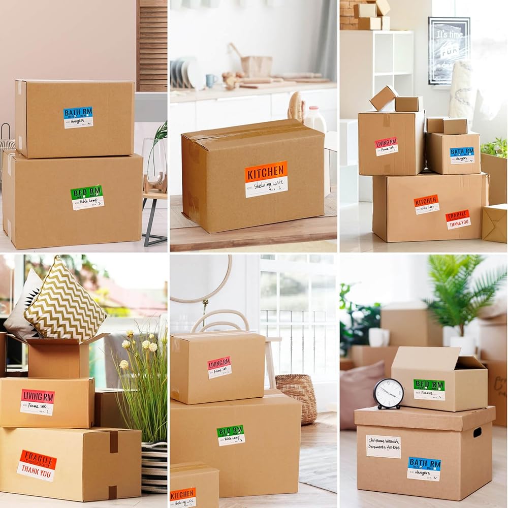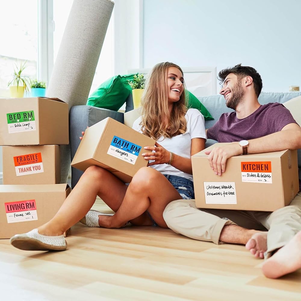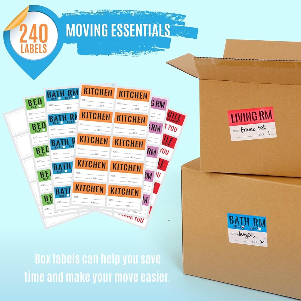 ملصقات صناديق متحركة منزلية قابلة للإزالة، ملصقات منزلية متحركة، 240 قطعة من علامات الغرفة ملصقات صناديق متحركة 2 × 3 بوصة ملصقات صناديق التعبئة الملونة للغرفة ملصقات هشة