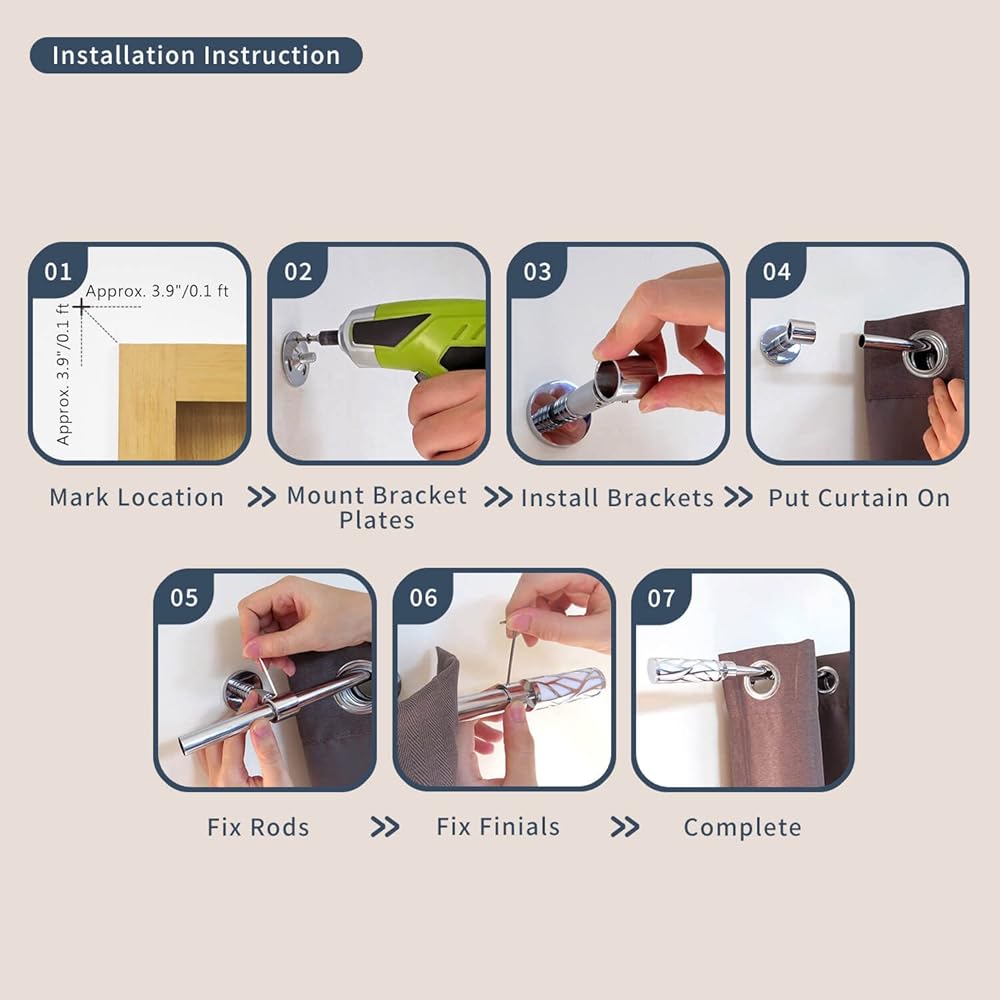 التشطيبات الزخرفية: توجد تيجان تصميم الفرع لدينا على طرفي قضيب الستارة. إنه يعزز التصميم البصري لمنزلك بلمسة نهائية فاخرة. تأتي كل مجموعة من قضبان الستارة مع دليل تعليمات التثبيت الكامل، مما يجعل عملية التركيب سهلة وآمنة وبسيطة.