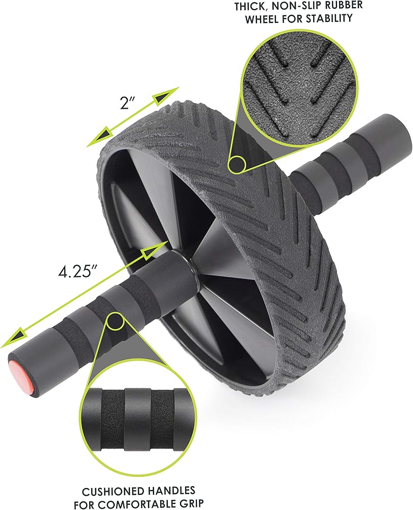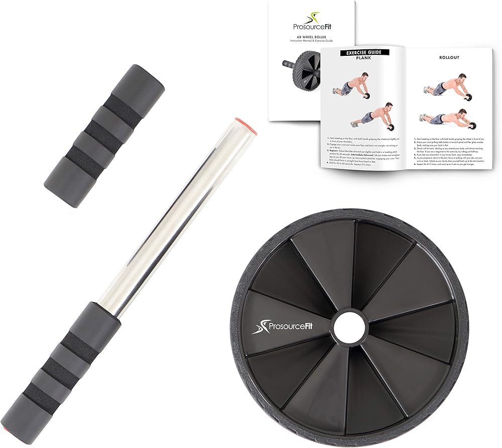 Whether you're shooting to sculpt a six-pack, or you need a stronger core for your sport, the ProsourceFit Ab Wheel Roller is the perfect piece of fitness equipment to get your abs in shape. This classic ab workout tool looks simple, but it's incredibly challenging and a quick way to tighten up your tummy. Not only that, but you will also build the muscles in your arms and back as you maneuver the wheel and hold yourself in a balanced position. Our upgraded version of the wheel makes ab rollouts more comfortable and aids in stability to help you maintain proper form and avoid injury. Cushioned handles with finger grooves provides a comfortable, firm grip to reduce hand fatigue while rolling. A thick 2-inch rubber wheel with tread gives you superior traction and smooth rolling. Steel rods and PP plastic offer durability for a fitness tool you can count on to perform workout after workout. The small, compact design makes if great for use at home, the gym, and storing in your car trunk for mobile exercise routines. To perform ab rollouts, position yourself on your knees with arms extended in front of you gripping the wheel. Flex abs and keep them engaged as you roll forward as far as is comfortable for you without back strain. Make sure to maintain a flat back. Even a slight extension will provide a great workout as you build towards a full extension. You can also roll out slightly to the right or the left to target your obliques more. Or hold a plank position on your toes while holding the roller beneath your shoulders. This no-weights-required workout is a much more efficient way to target your abs than crunches or sit-ups, because it also targets other core muscles at once beyond the “six-pack abs”, to strengthen your lower back and deep stabilizing muscles. Plus, you can purchase with confidence with a limited lifetime warranty!