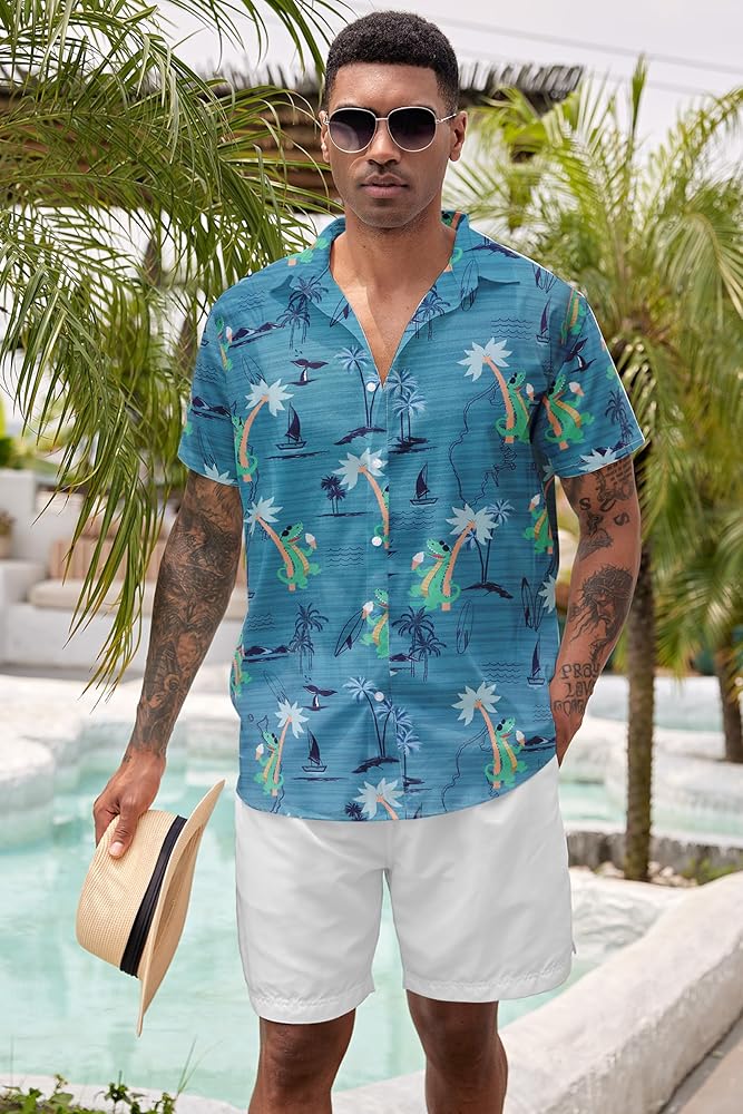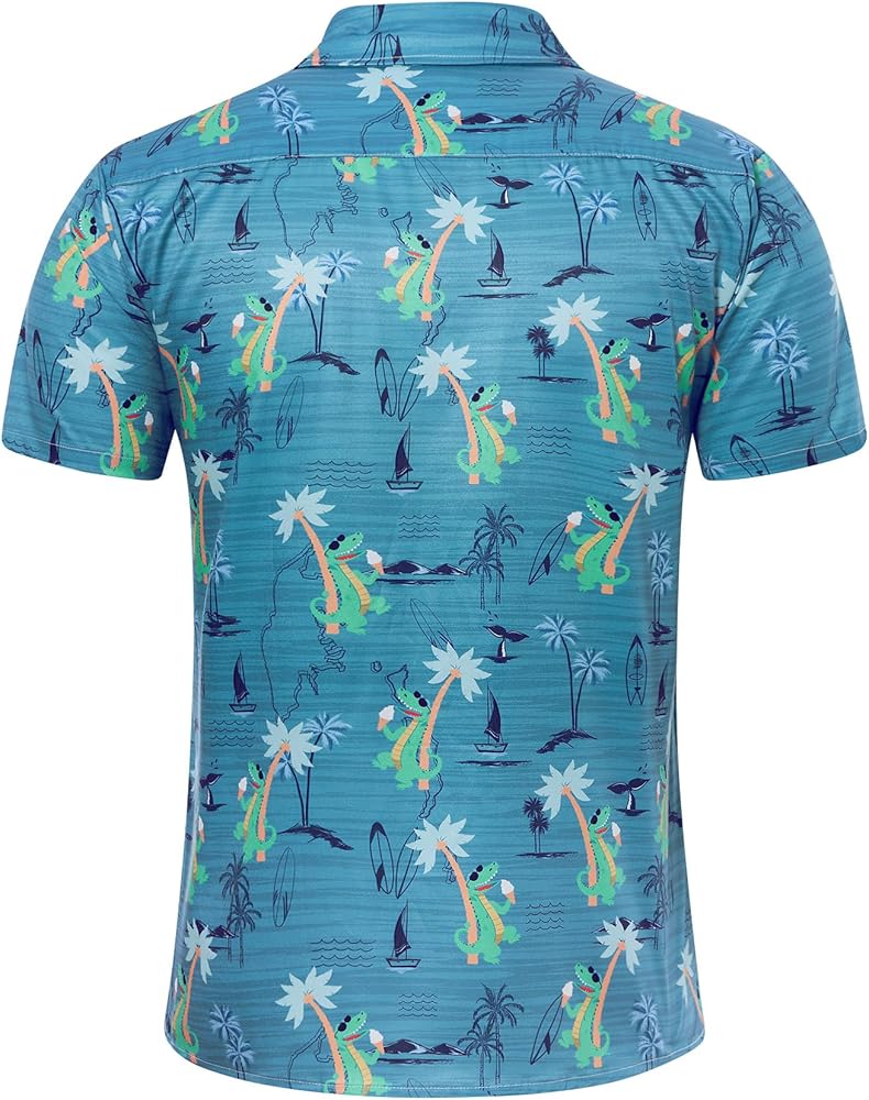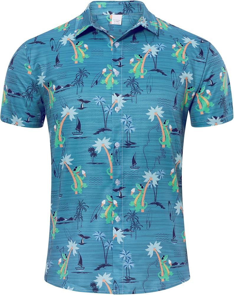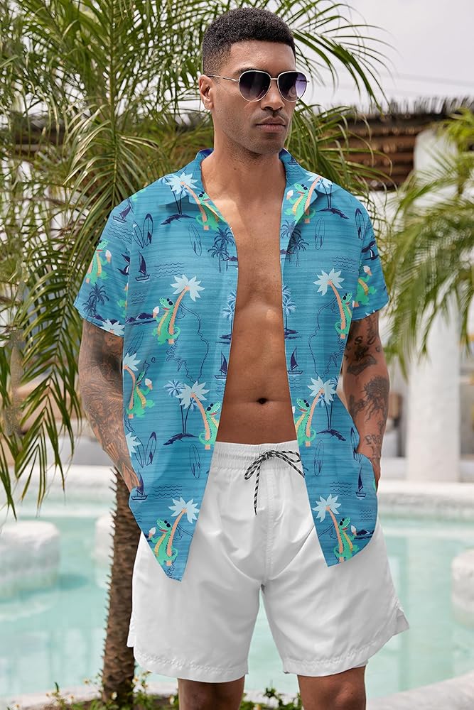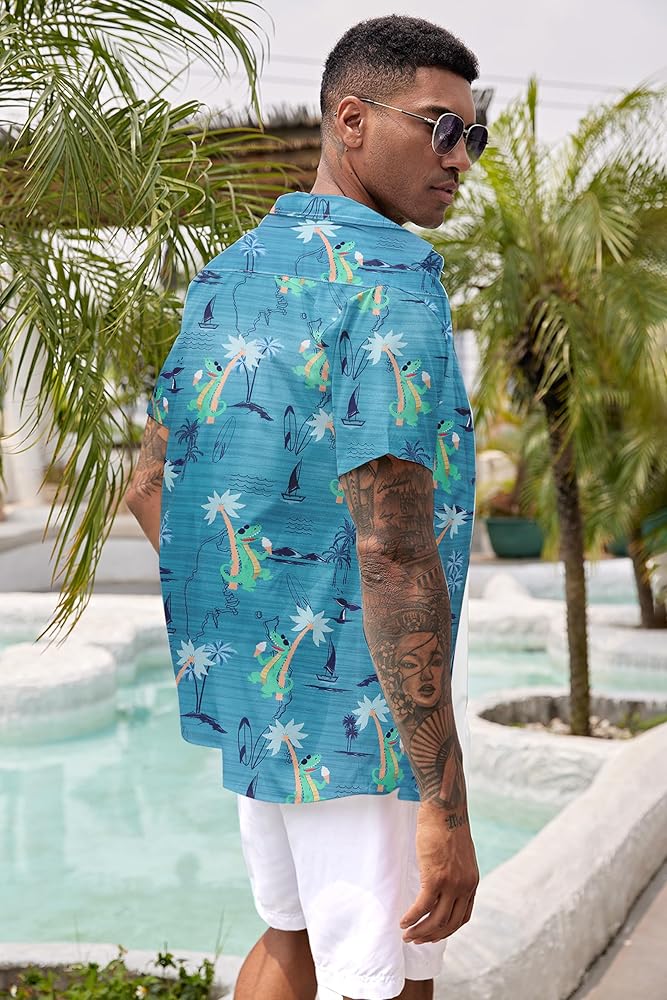 【نمط مطبوع على شاطئ هاواي】: يتميز هذا القميص الصيفي بأكمام قصيرة، وياقة مطوية، وتصميم بأزرار سفلية وطباعة هاواي نابضة بالحياة مليئة بالنمط الاستوائي وعناصر الموضة، وأنماط الحيوانات مثل الفلامنغو والديناصور والغوريلا، وسوف تجلب لك قمصاننا الاستوائية مظهر ملفت للنظر.