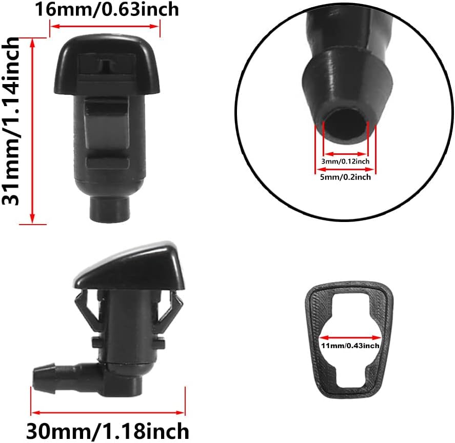 - تشمل العبوة: 2 × فوهة رش لغسالة الزجاج الأمامي، 2 × فوهة غسيل الزجاج الأمامي، حشية مطاطية