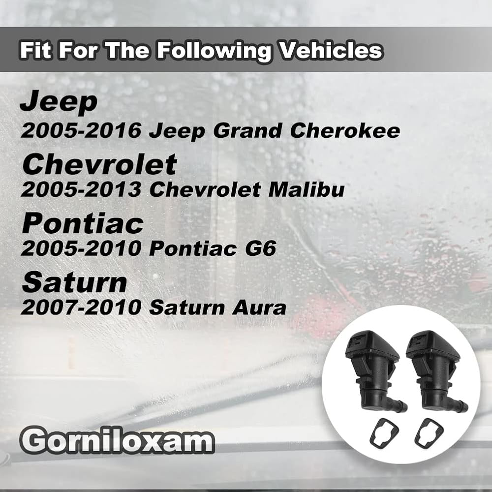 - فوهة الغسالة مناسبة: لسيارة جيب جراند شيروكي 2005-2016، لسيارة شيفروليه ماليبو 2005-2013، لسيارة بونتياك G6 2005-2010، لسيارة ساتورن أورا 2007-2010