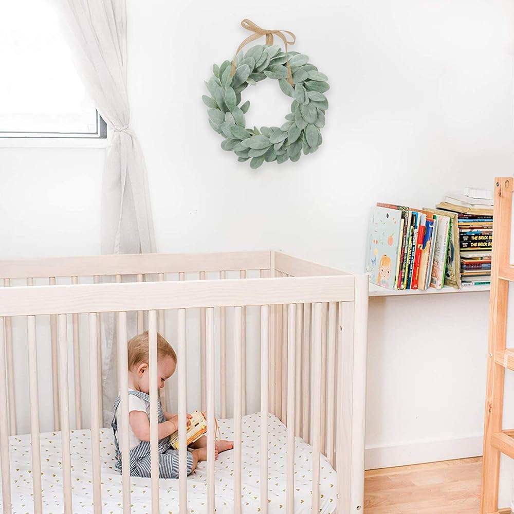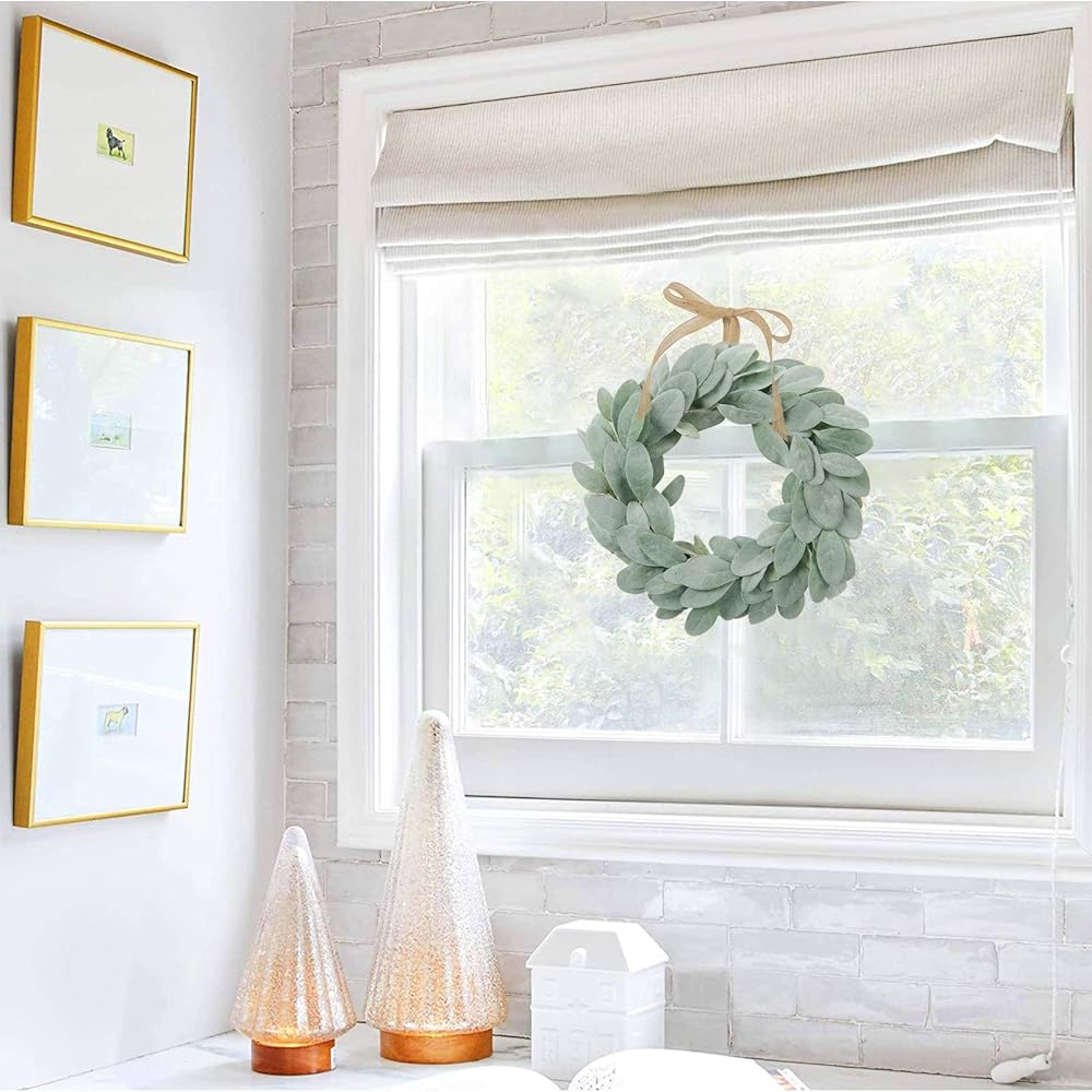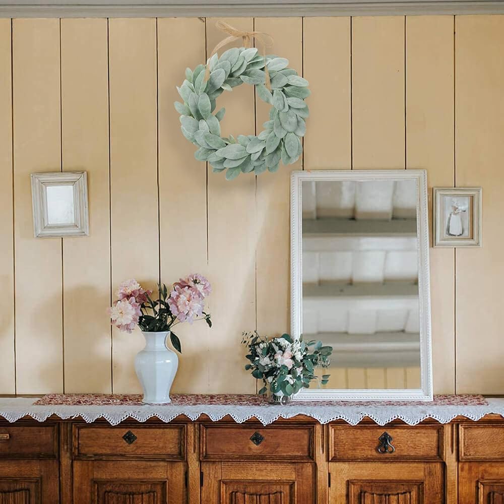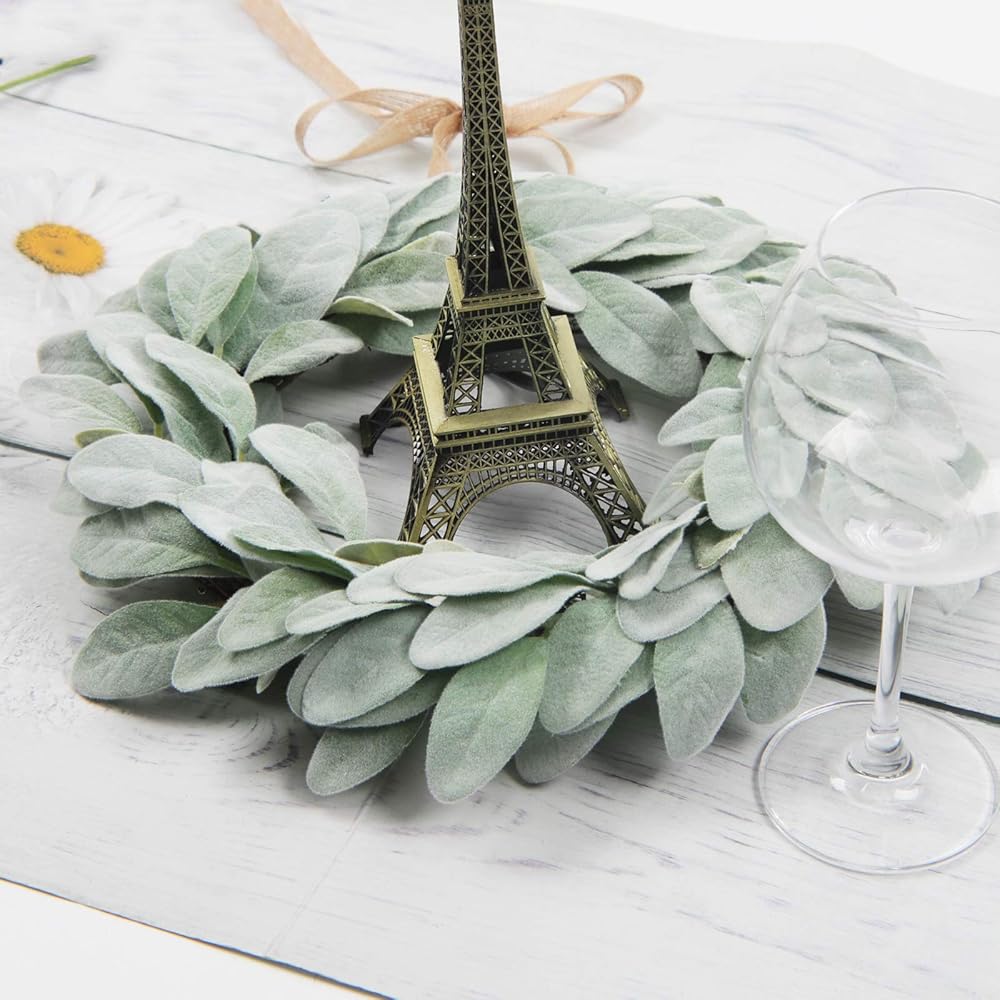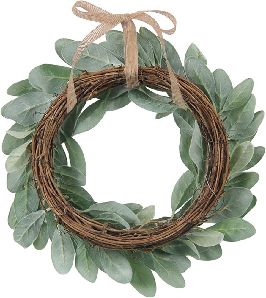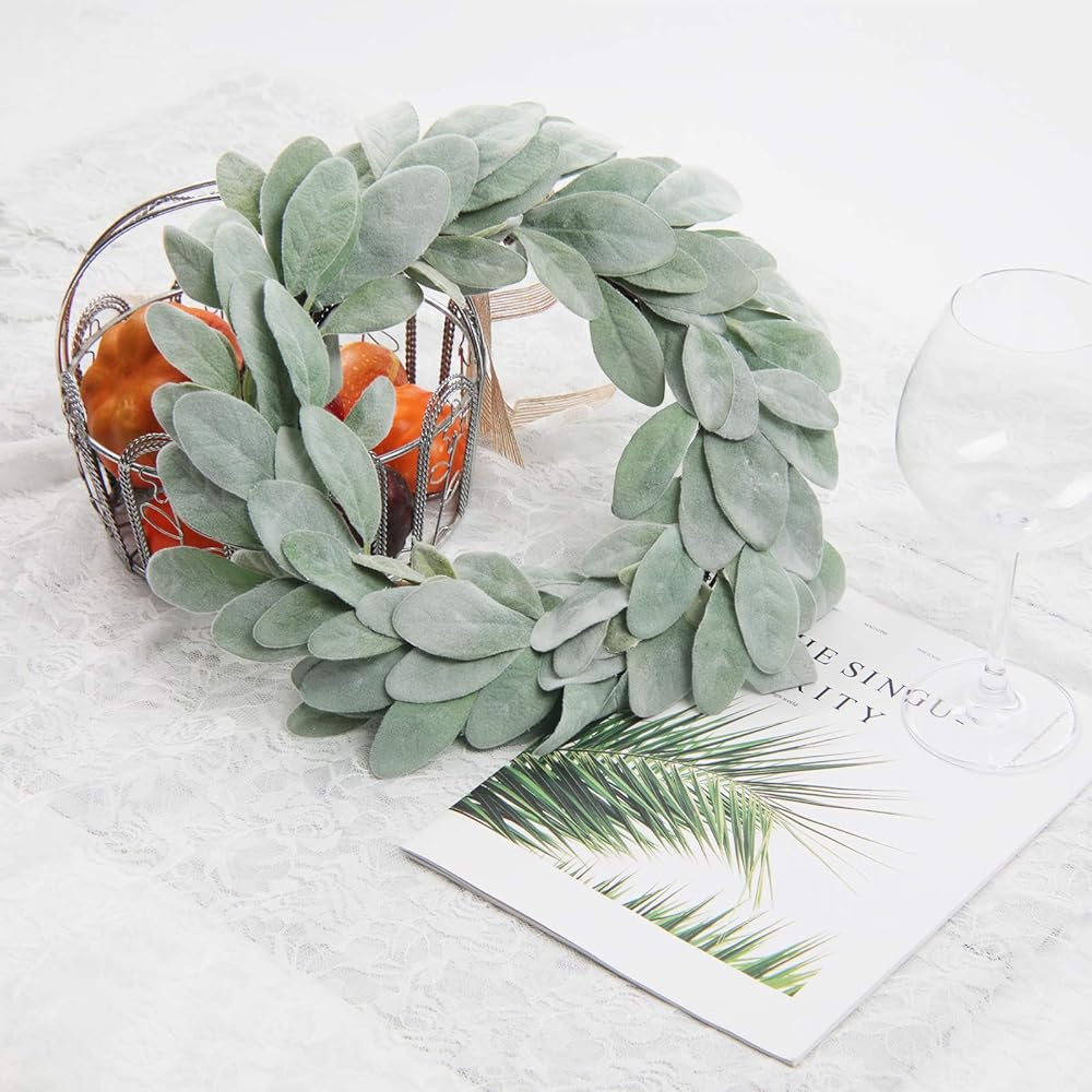 شاكوس إكليل أذن من الحمل الاصطناعي مقاس 13 بوصة إكليل مزرعة صغير أخضر لديكور المنزل والزفاف