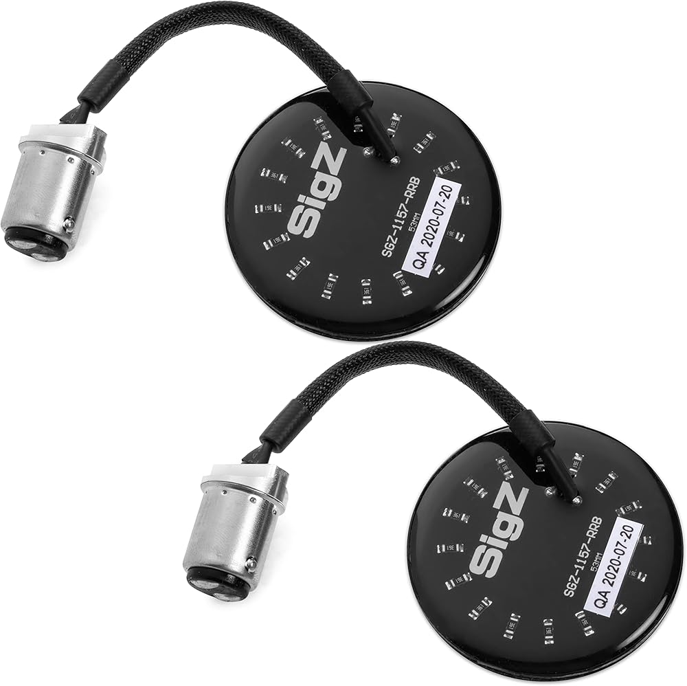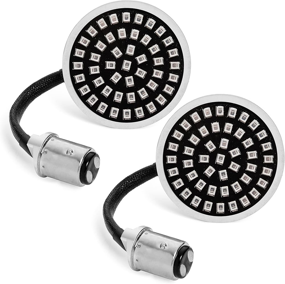 متوافق مع HARLEY DAVIDSON: تم تصميمه ليتم توصيله وتشغيله على Harleys مع أغلفة أمامية 1157 مقاس 2 بوصة مع أعمدة اتصال/إزاحة مزدوجة. تعمل هذه كإشارات انعطاف LED باللون الكهرماني/الأبيض الساطع ومصابيح تشغيل LED بيضاء ساطعة.