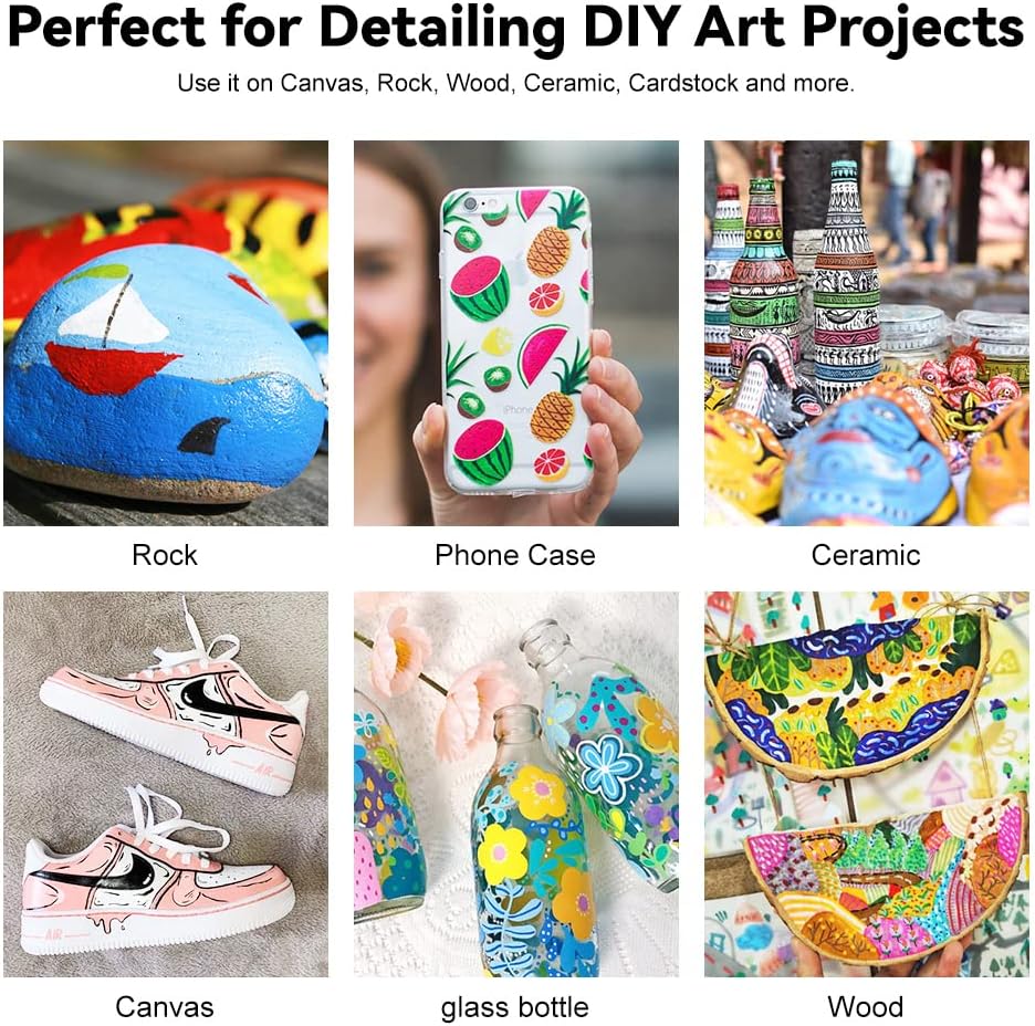 🎨[نابضة بالحياة، مصبوغة للغاية] - أقلام الأكريليك هذه مصنوعة من صبغة عالية، والطلاء عالي الجودة غني بالصبغة لتغطية غير شفافة، وهو ناعم ويتدفق دون عناء. وهو مستقر بما يكفي لمقاومة الاصفرار والبهتان.