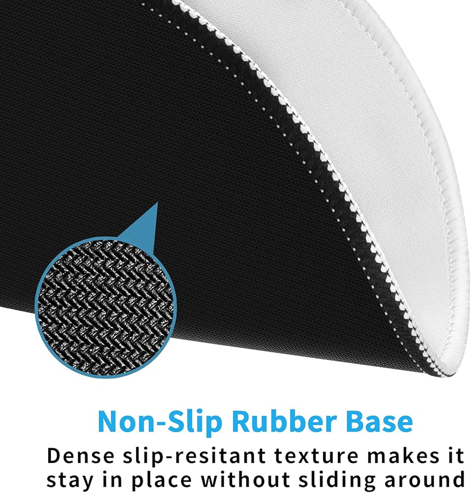 【قاعدة مطاطية مضادة للانزلاق】 يمكن لمنحنى متداخل كثيف وقاعدة مطاطية غير قابلة للانزلاق أن تمسك بقوة بأي سطح صلب مسطح وتحافظ على لوحة الماوس الجميلة في مكان واحد أثناء العمل أو الألعاب. لن يكون لها رائحة كريهة مقارنة بوسادات الماوس الأخرى. رائعة لجهاز الكمبيوتر المحمول والكمبيوتر والكمبيوتر الشخصي.