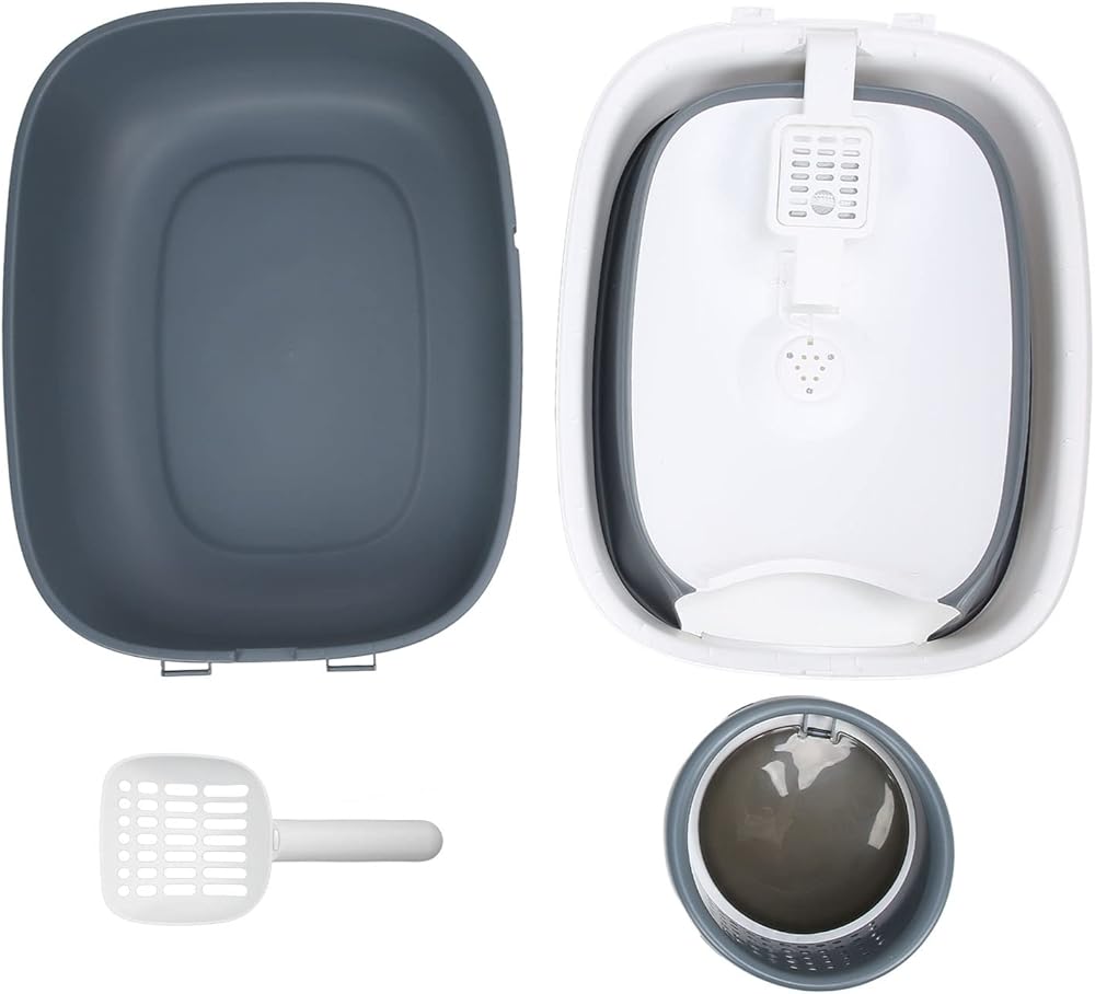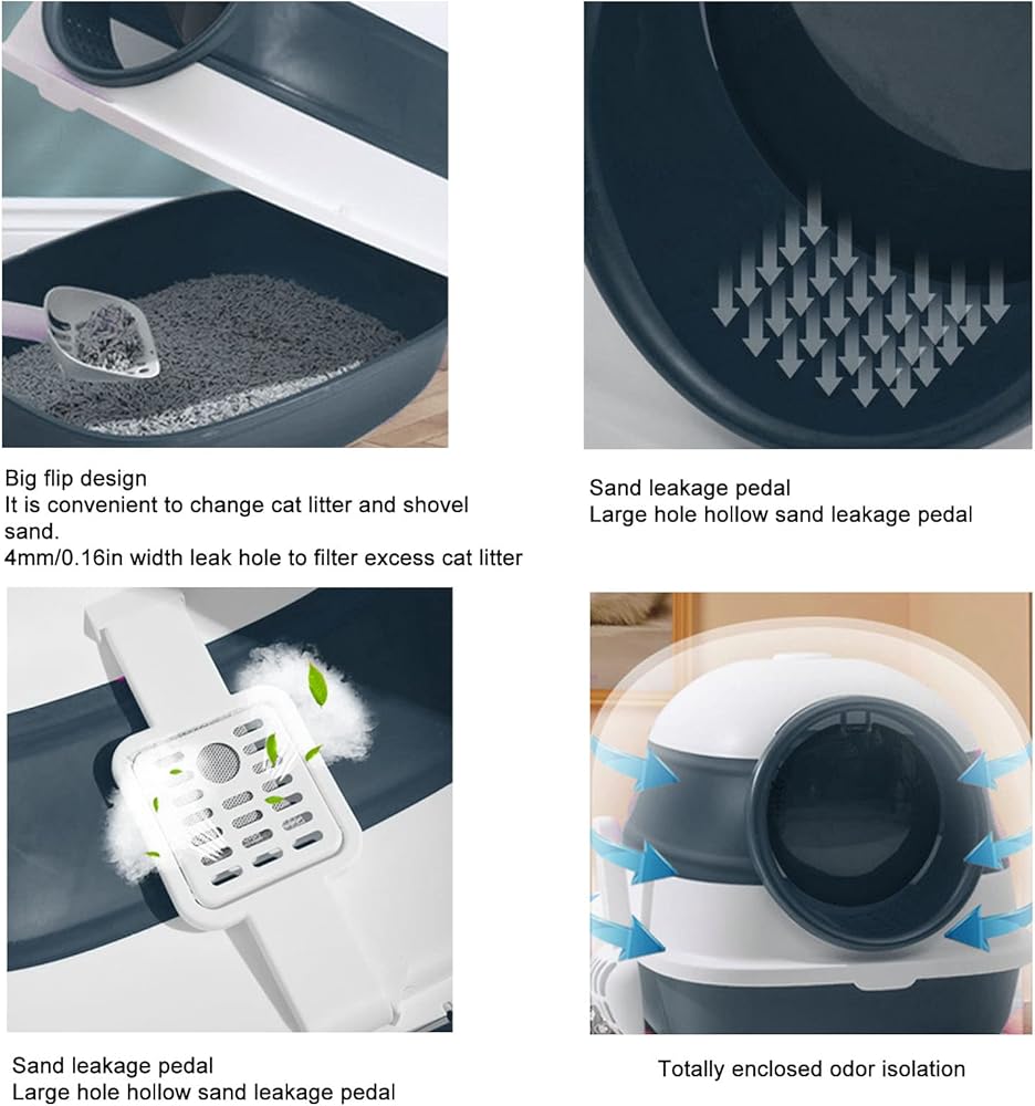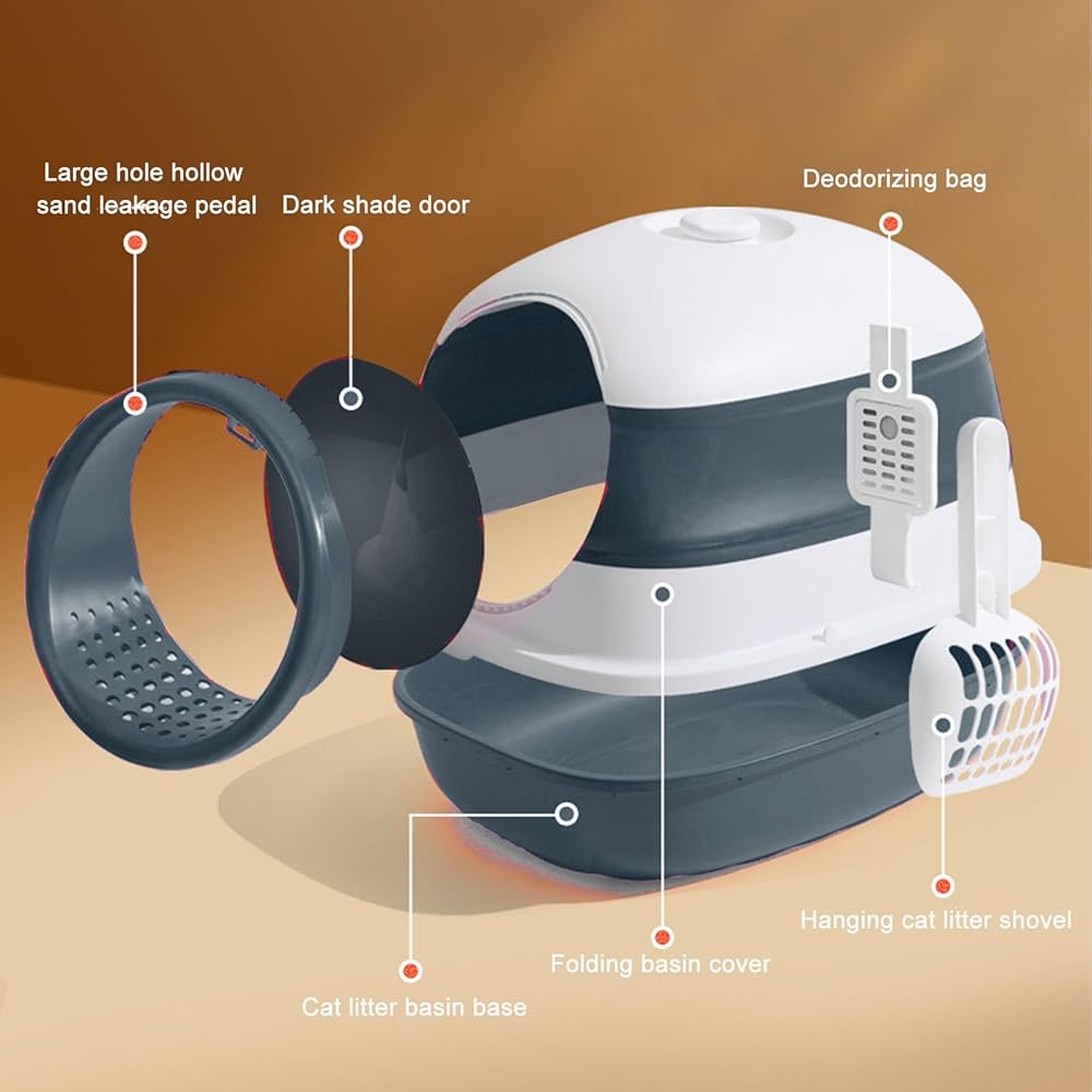 صندوق فضلات مرحاض القطط، حوض فضلات القطط مغلق بالكامل وغطاء للرأس عديم الرائحة مع غطاء للقطط
