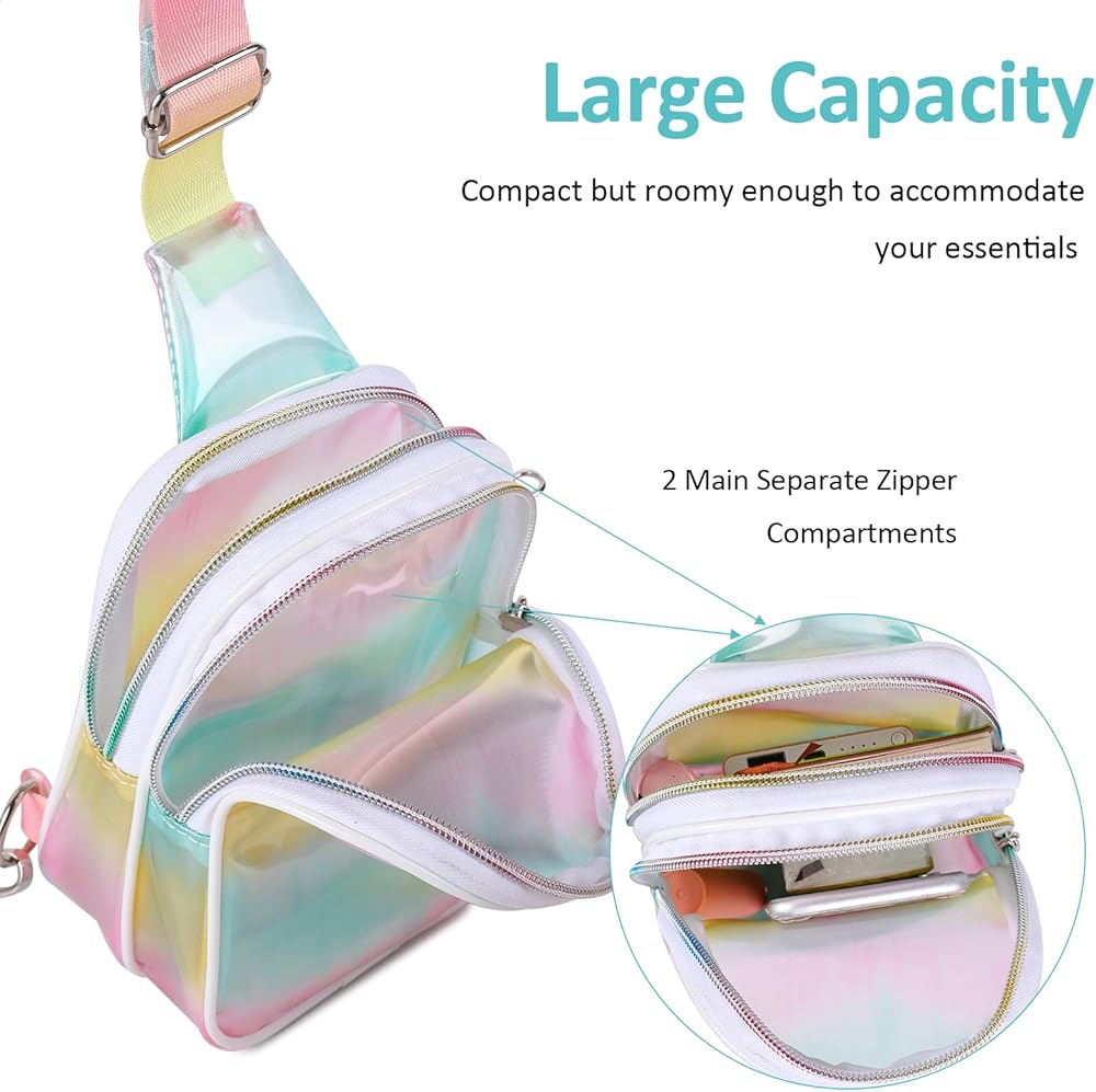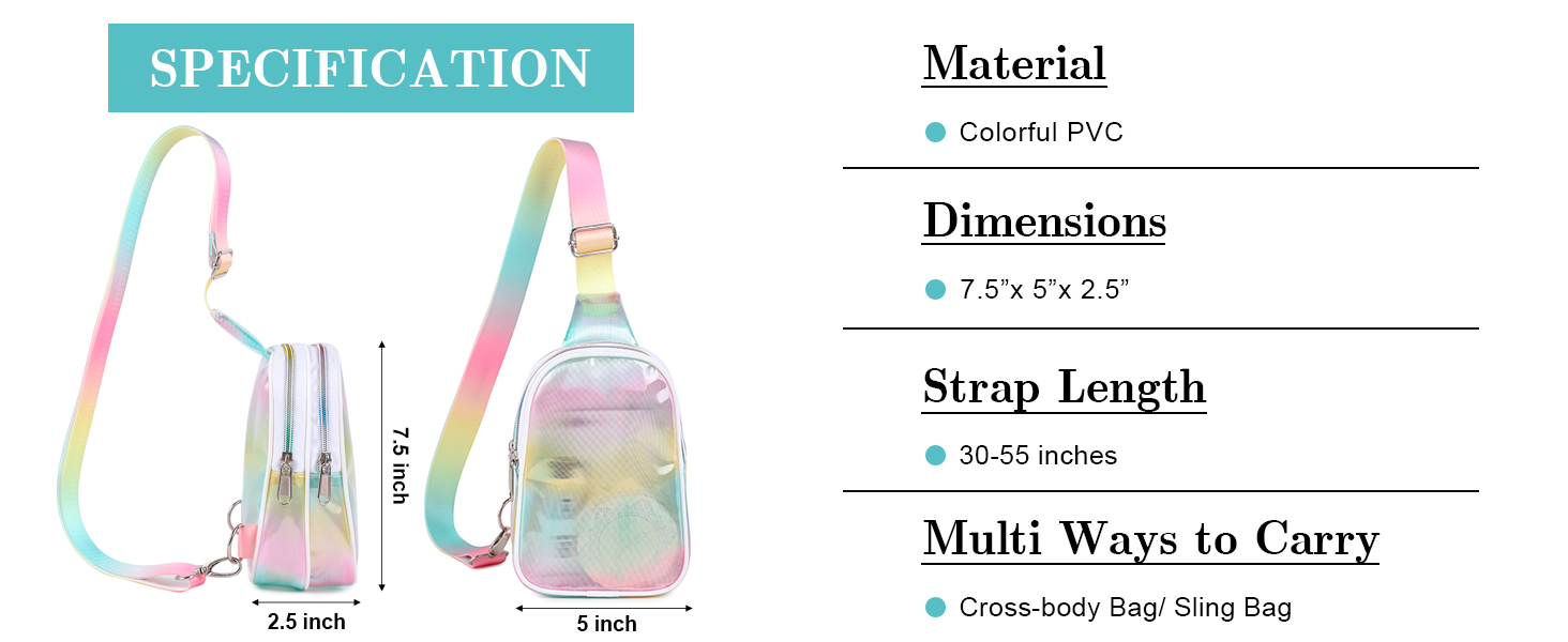 مساحة واسعة والحفاظ على التنظيم: القياس: 5.5 بوصة (طول) × 2.5 بوصة (عرض) × 7.5 بوصة (ارتفاع)، تتميز حقيبة الهولوغرام بجزئين بسحاب، صغيرة ولكنها واسعة بما يكفي لتخزين هاتفك، والنظارات الشمسية، والمحفظة الصغيرة، البطاقات والمفاتيح وغيرها من الضروريات الصغيرة ابق منظمًا وعصريًا بسهولة
