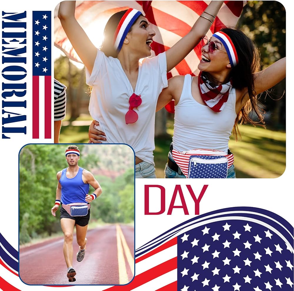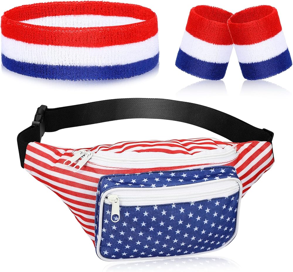 • Practical Patriotic Combination: you will receive 1 piece of American fanny pack, 1 piece of retro headband men and 1 pair of athletic wristbands; The practical combination can meet your outdoor and sports needs