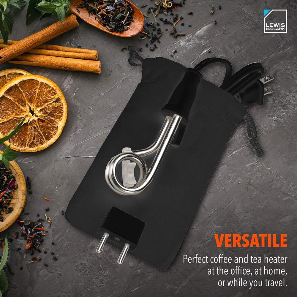 متعدد الاستخدامات: سخان مثالي للقهوة والشاي في المكتب أو المنزل أو أثناء السفر. إضافة رائعة لملحقات التخييم الخاصة بك. صغيرة الحجم وخفيفة الوزن وقابلة للحمل. لا حاجة إلى غلاية كهربائية ضخمة