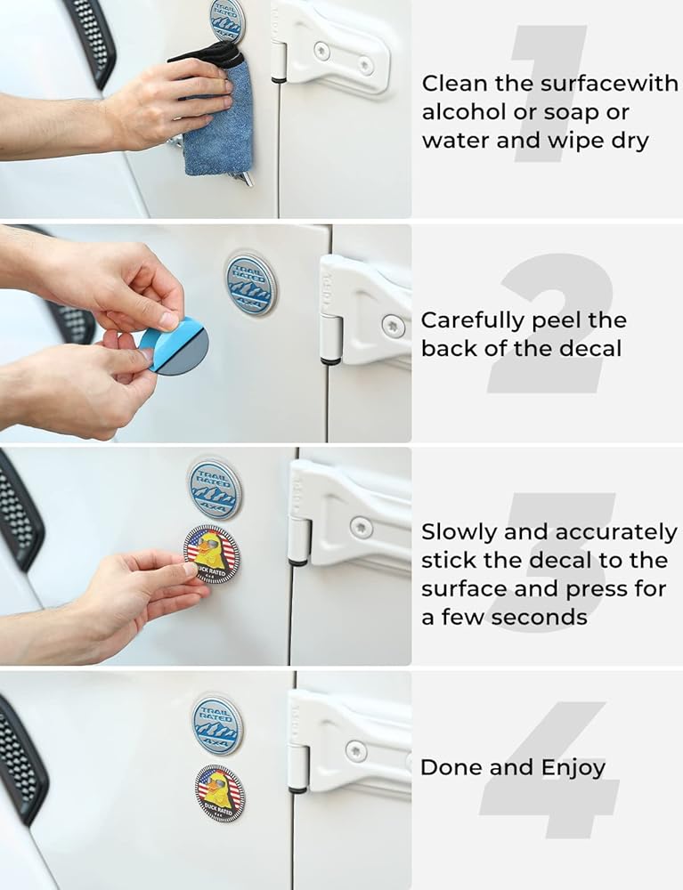 【لاصق قوي وسهل التركيب】يأتي ملصق الشارة هذا بظهر لاصق قوي، ويحتفظ بروابط قوية حتى أثناء الاهتزاز. ما عليك سوى تقشير الجزء الخلفي ولصقه على مكان نظيف بسهولة.
