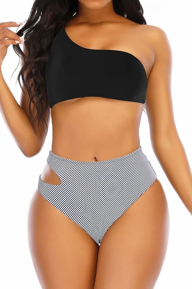 √ بدلة استحمام كلاسيكية مكونة من قطعتين، مبطنة بالكامل، كتف غير متماثل، خالية من الأسلاك، مبطنة قابلة للإزالة، طباعة زهور عصرية.