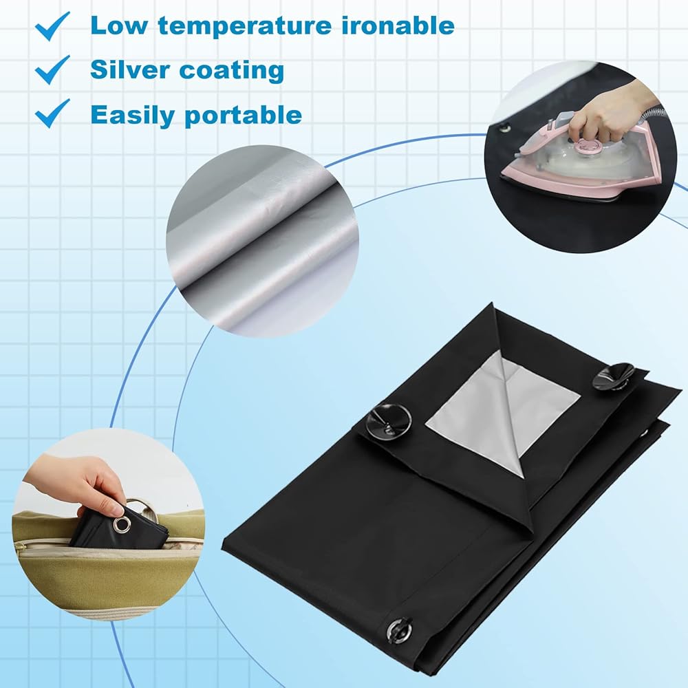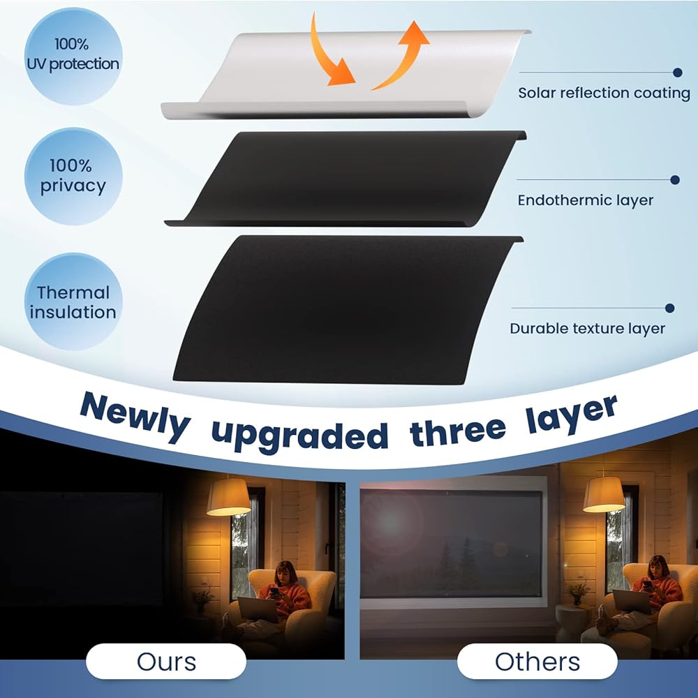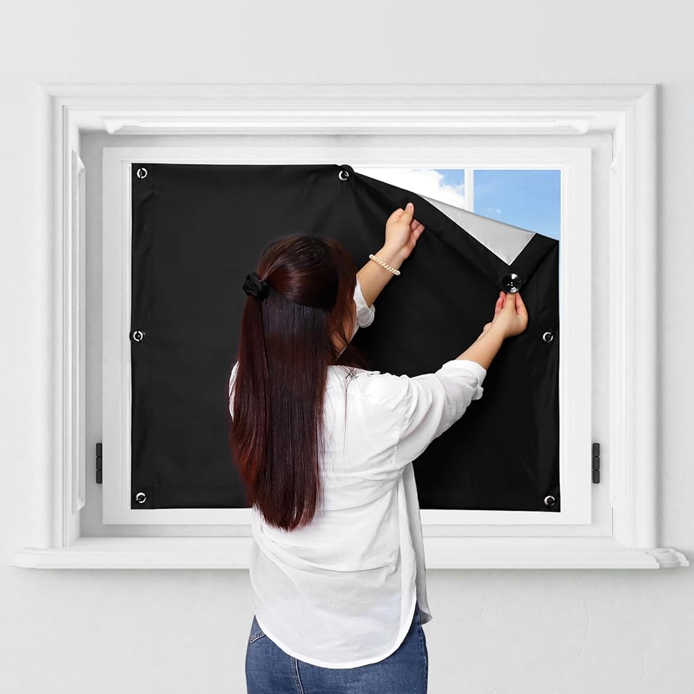 Double-layer Design for Powerful Sunshade - Our Suction Cup Blackout Curtain features a durable double-layer construction. The front is made of waterproof Polyester Pongee, while the back is equipped with a 100% light-blocking silver coating. This combination effectively blocks out light, absorbs UV rays, and ensures a comfortable sleep environment.