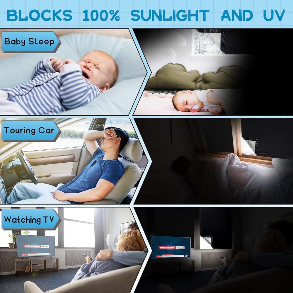 Various Specifications for Different Scenes - We offer 7 different sizes and 2 colors for you to choose from. Before making your purchase, please you measure the size you need. Our portable blackout blind is versatile and perfect for various settings, including bedrooms, living rooms, kitchens, attics, roof windows, cars, and even restaurants.