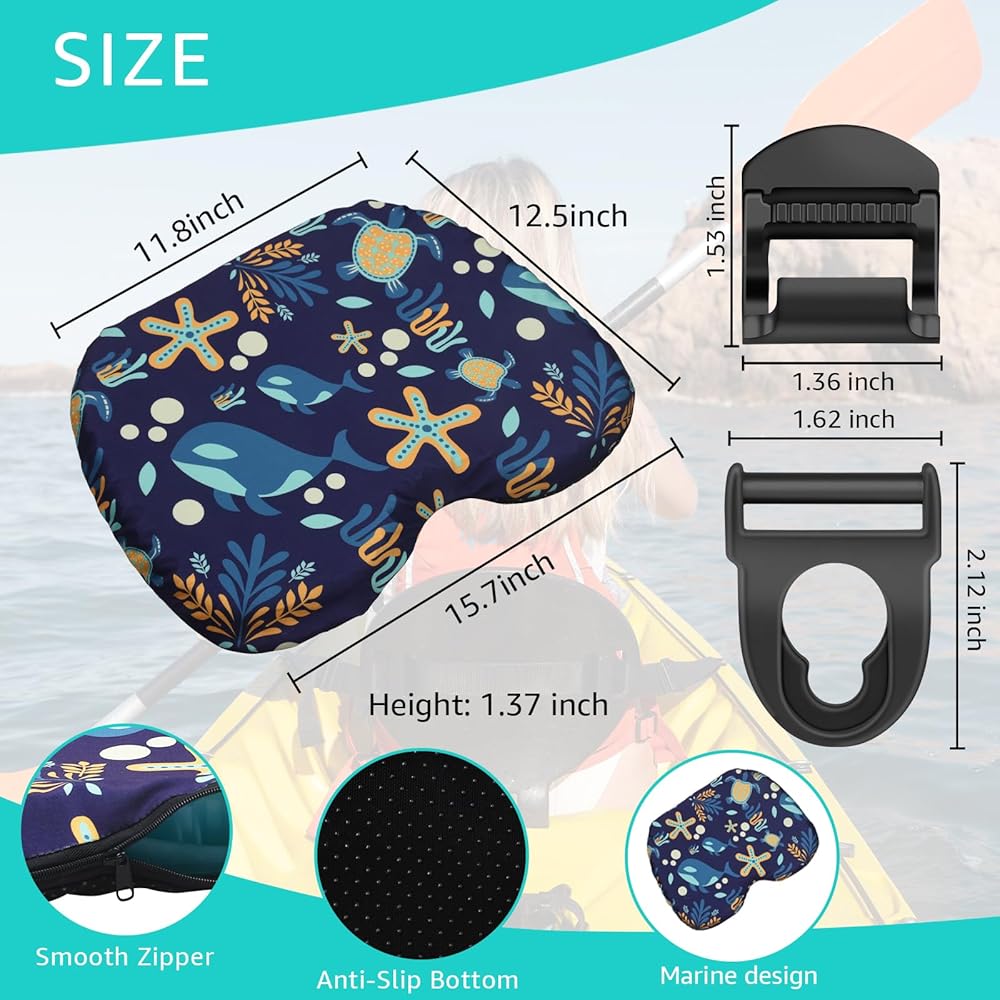غطاء قابل للفصل غير قابل للانزلاق: وسائد مقعد كاياك المقاومة للماء مجهزة بغطاء قماشي بتصميم سحاب وجزيئات سيليكون مضادة للانزلاق في الأسفل، يمكنك استخدامها بمفردها أو مع غطاء القماش وفقًا لاحتياجاتك. غطاء من القماش يمكن غسله يدويًا وفي الغسالة. يمكن إزالة وسادة المقعد وشطفها بالماء حتى تجف.