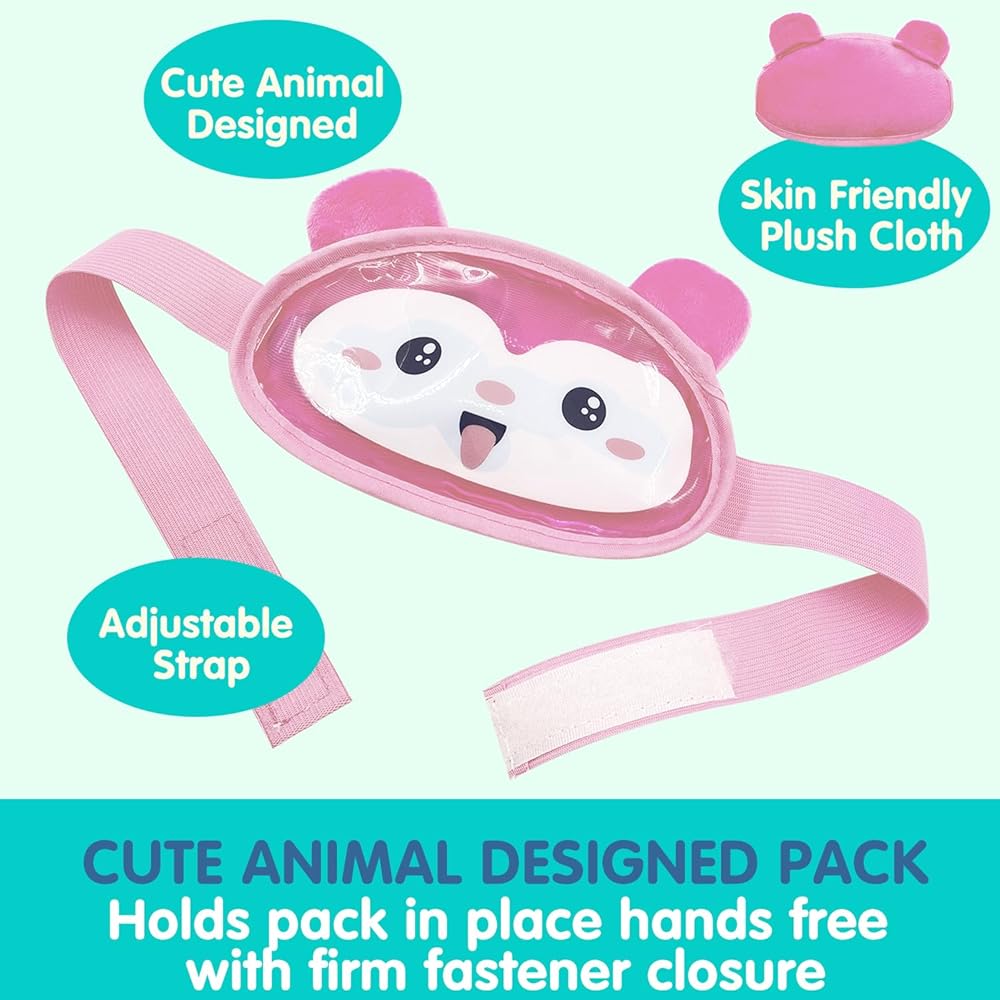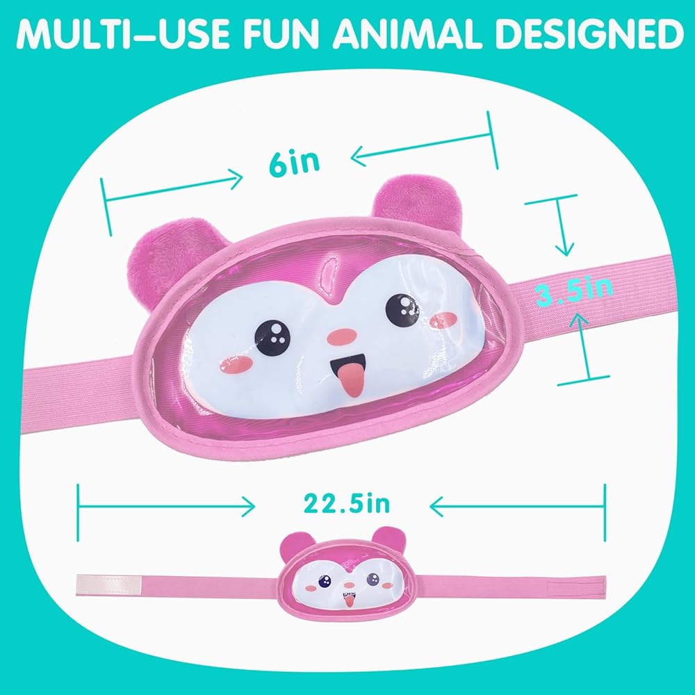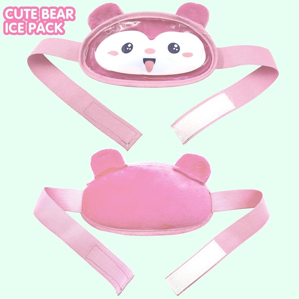 ❤️ [المنتج متضمن]: 2 عبوة ثلج لطيفة على شكل دب. كيس الثلج مصنوع من مادة PVC المطبوعة بنمط لطيف والجزء الخلفي مصنوع من قماش قطيفة صديق للبشرة مع مطاط قابل للتعديل.
