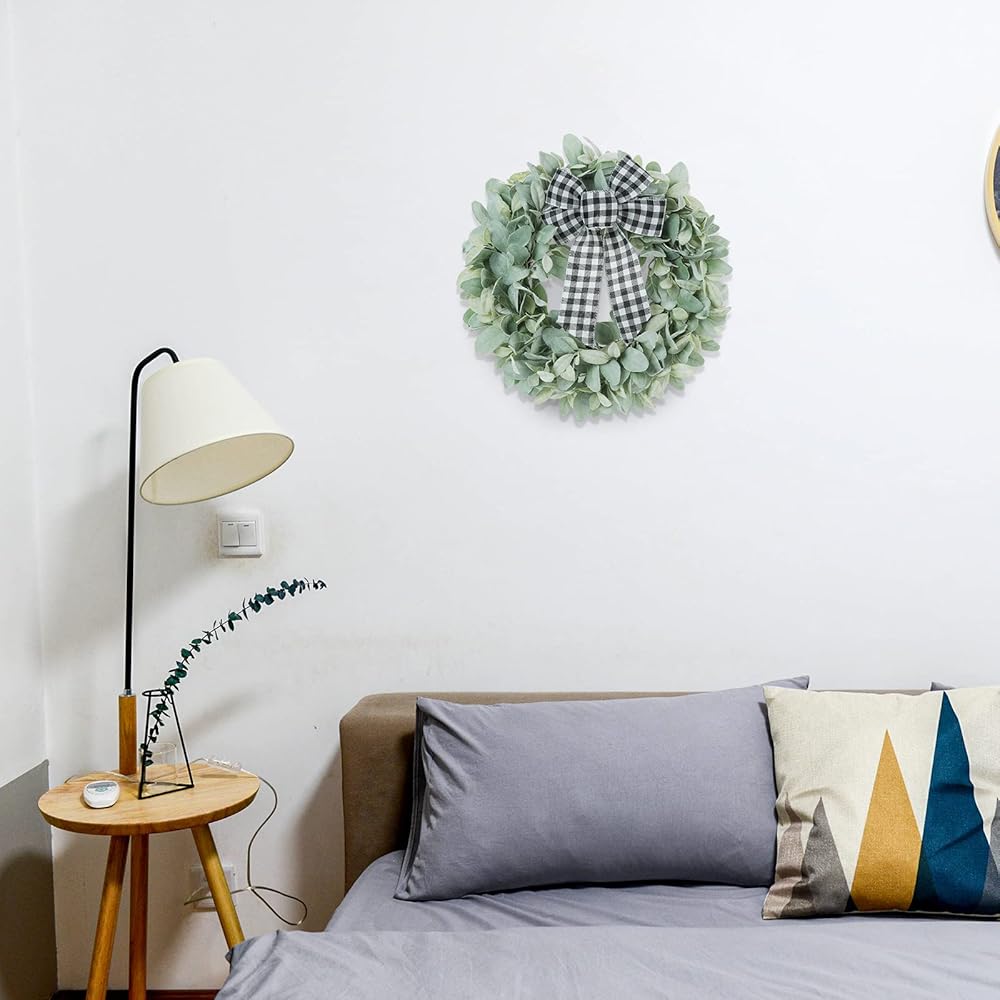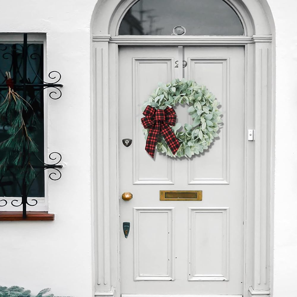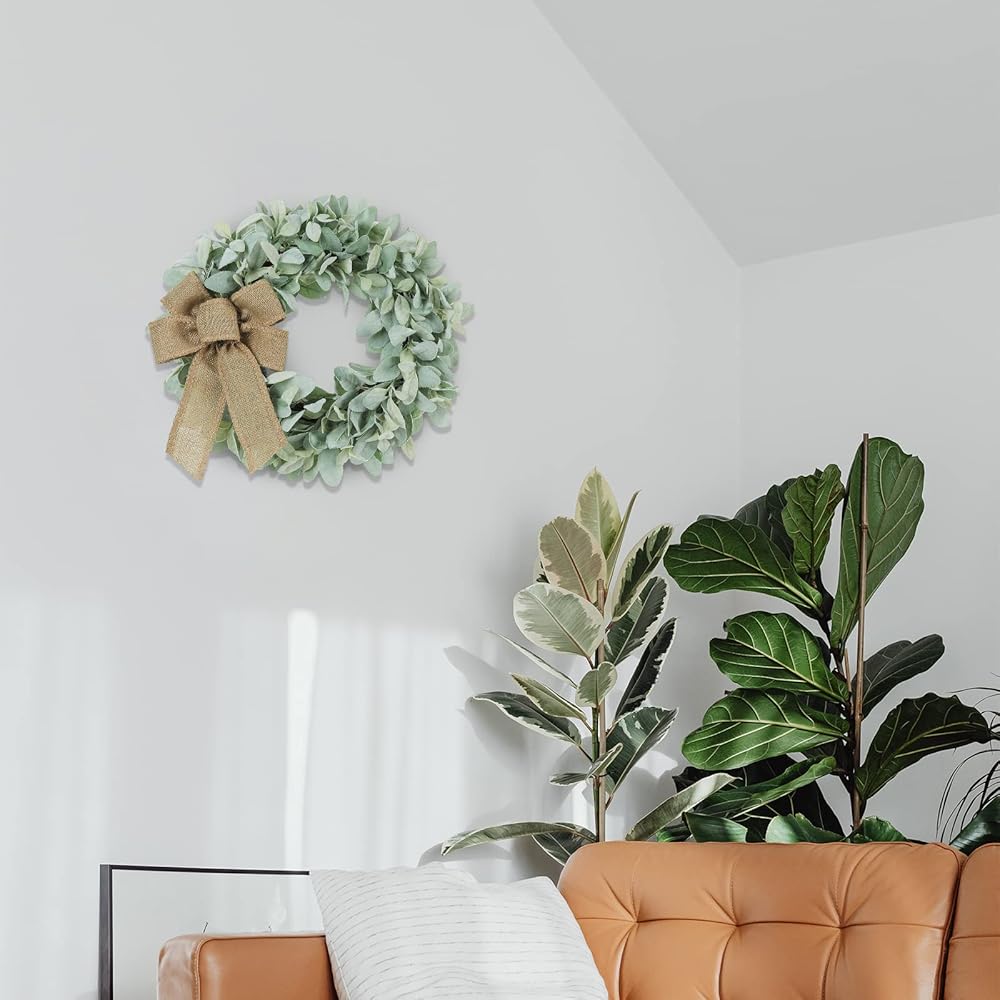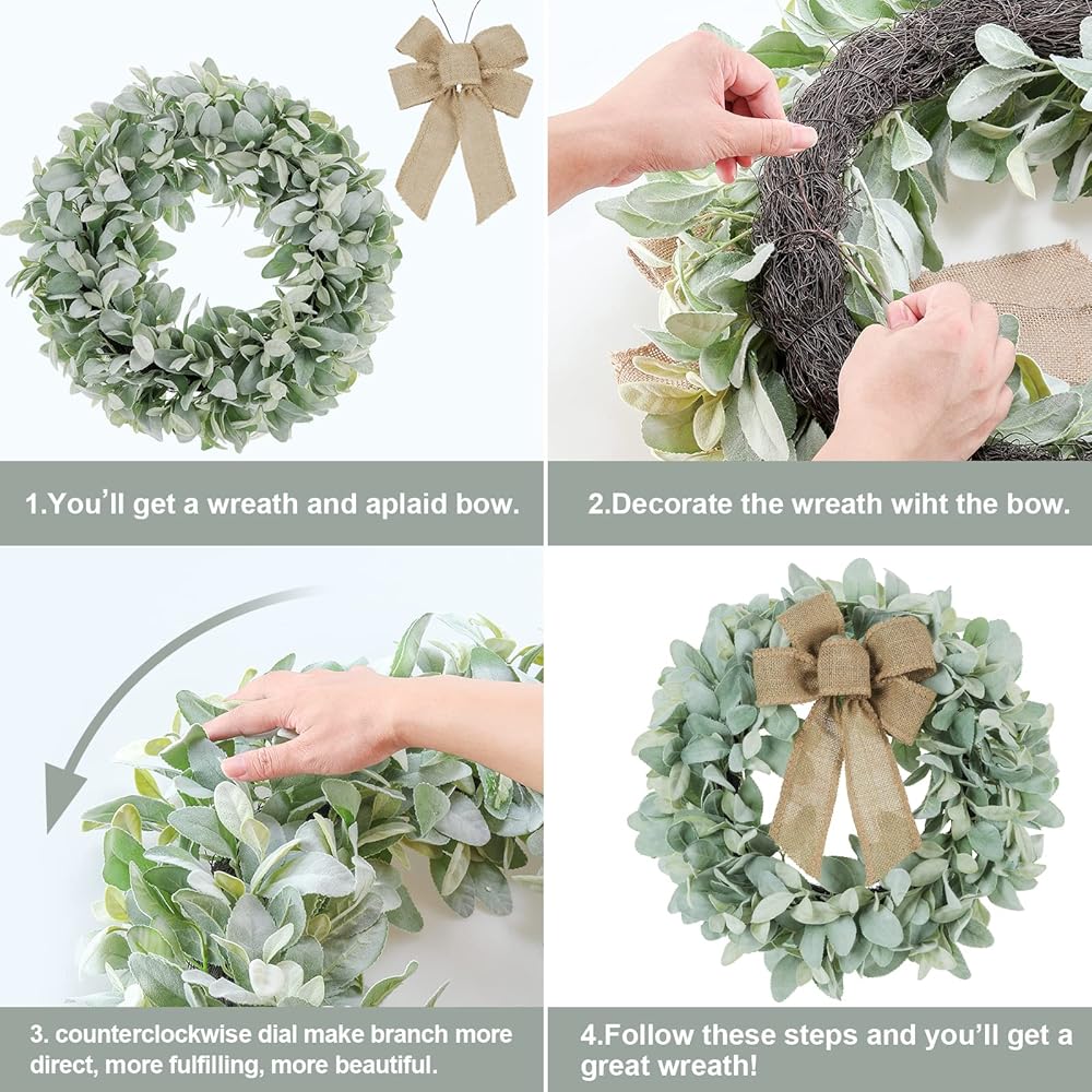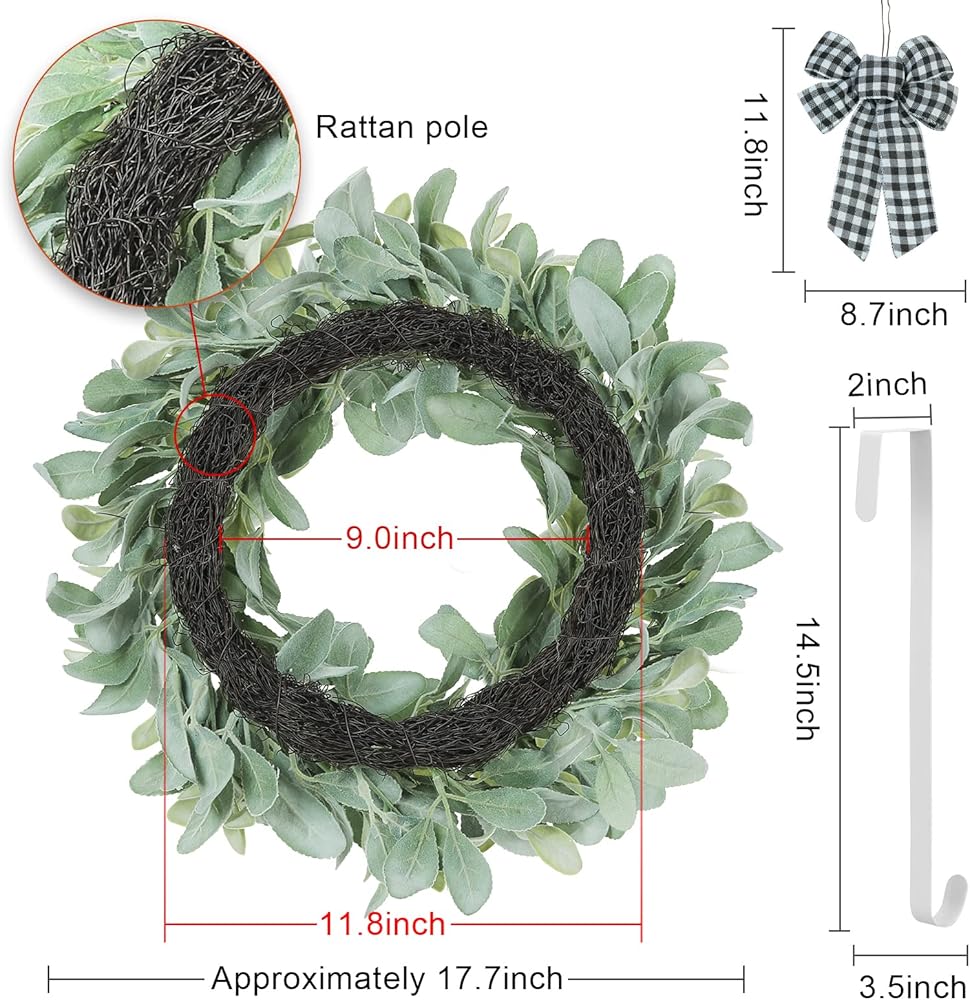 The Flocked Lambs Ear Wreaths designer comes with 3 different colored bows, which you can change to the butterfly festival depending on the season, and also comes with a hanger for you to hang the wreath on the front door or indoor. It's convenient for you to set up the wreath.