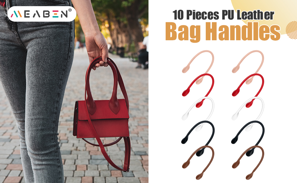 MEABEN 10 قطع من مقبض حقيبة جلدية PU، حزام حقيبة يد، مقابض محفظة جلدية، مقابض بديلة لأشرطة الحقيبة، ملحقات حقيبة لحقيبة اليد/حقائب الكتف/حقيبة الظهر/صناعة المحفظة، متعدد الألوان 42 سم