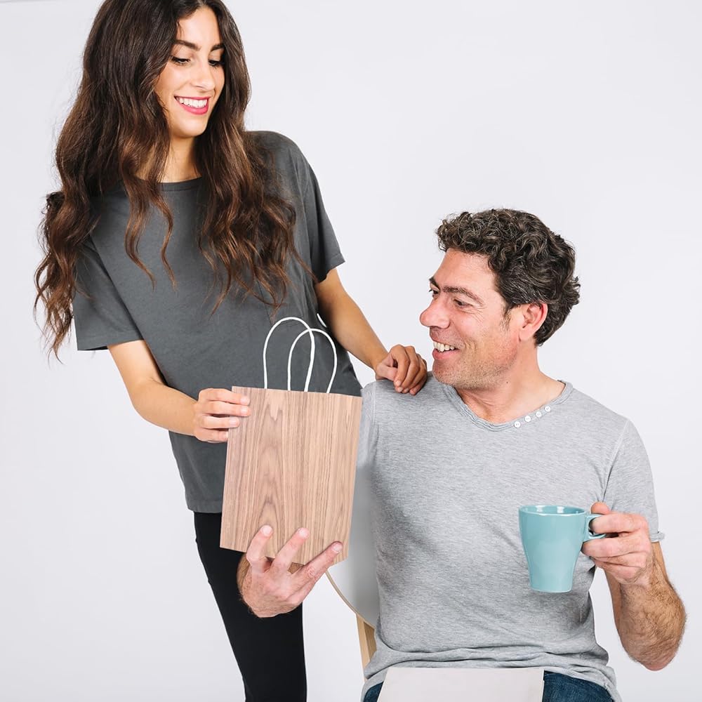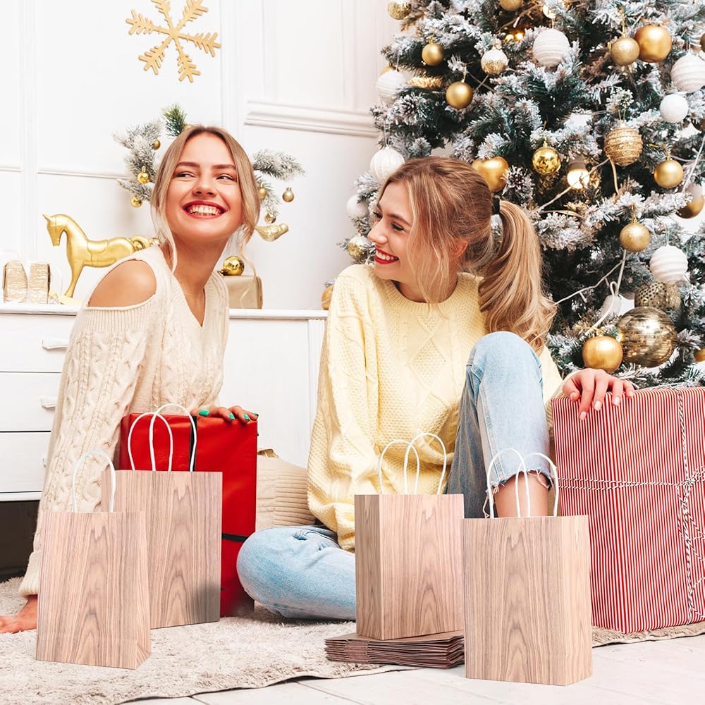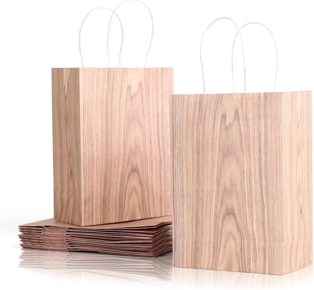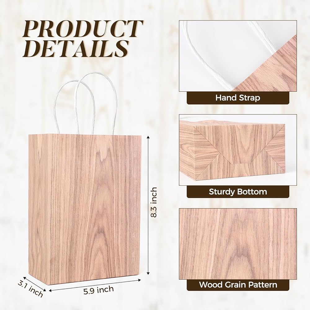 12 Pack Brown Kraft Paper Bags with Handles Wood Grain Party Supplies Bulk Gift Bags Party Baby Candy Bag Paper for Birthday Party Wedding