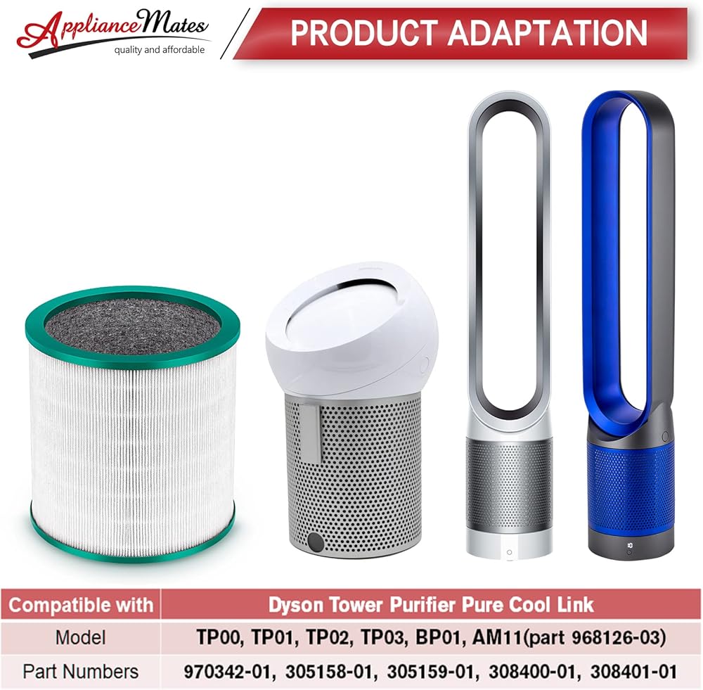 فلتر HEPA بديل لدايسون TP01 TP02 من ابلاينس ماتس - متوافق مع منقي دايسون تاور بيور كول لينك TP03 BP01 AM11، قطعة بديلة # 968126-03 (عبوة من قطعتين)