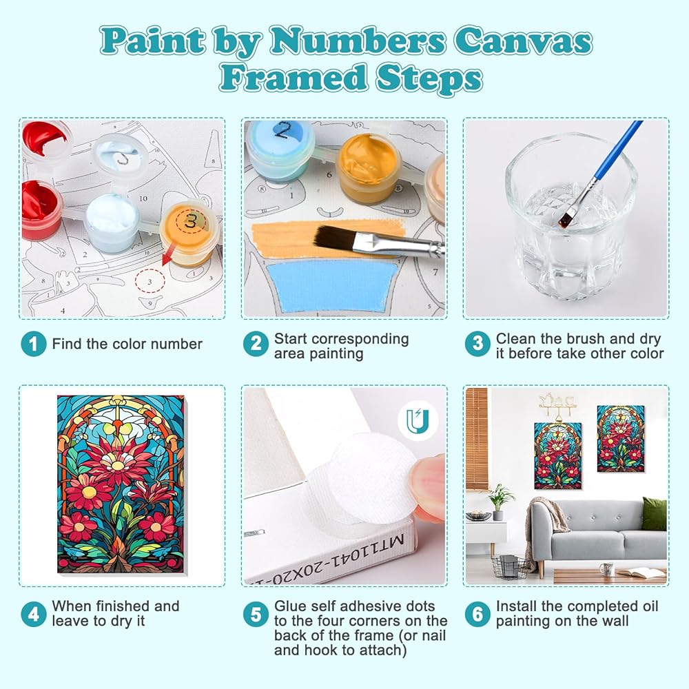 ✅【ما ستحصل عليه】تتضمن مجموعات الطلاء المؤطرة بالأرقام قماشًا مطبوعًا مسبقًا (مع إطار)، و3 أحجام مختلفة من فرش الطلاء، ومجموعة واحدة من أصباغ الأكريليك الملونة، ومجموعة من خطافات الأظافر، وصورة مرجعية و8 نقاط ذاتية اللصق. . ابدأ الرسم الخاص بك الآن!