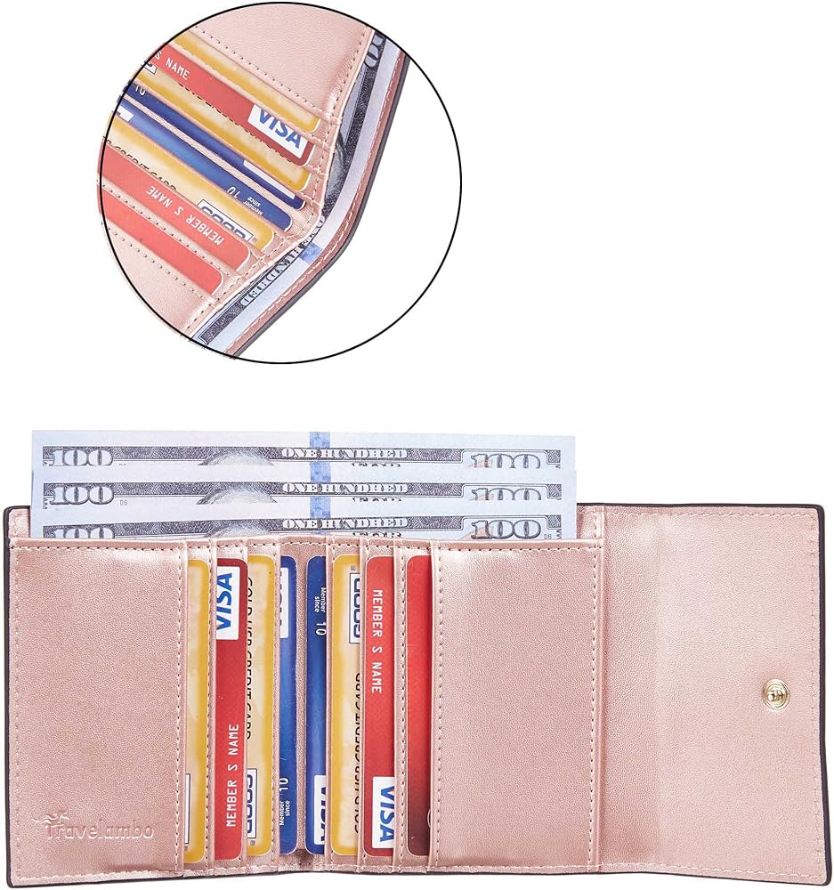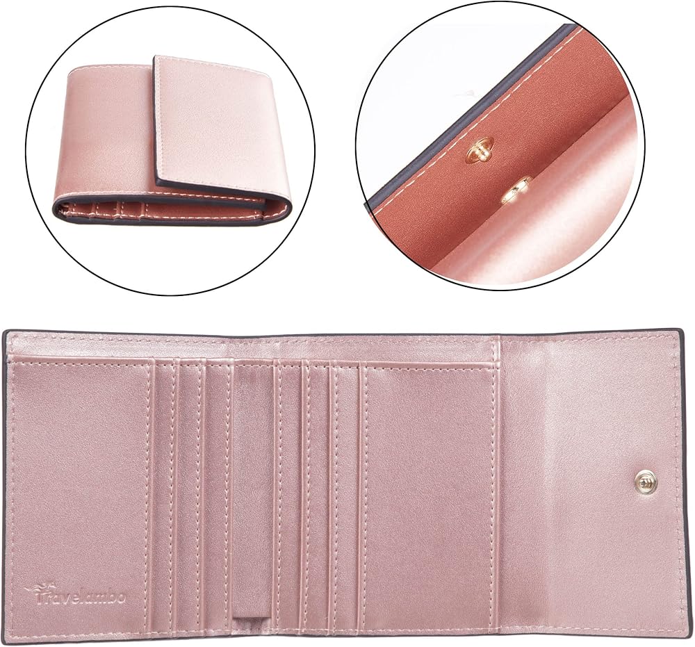 Travelambo RFID Blocking محفظة صغيرة صغيرة الحجم للعملات المعدنية وحامل ثلاثي الطي لبطاقة الائتمان ومحفظة جيب للنساء