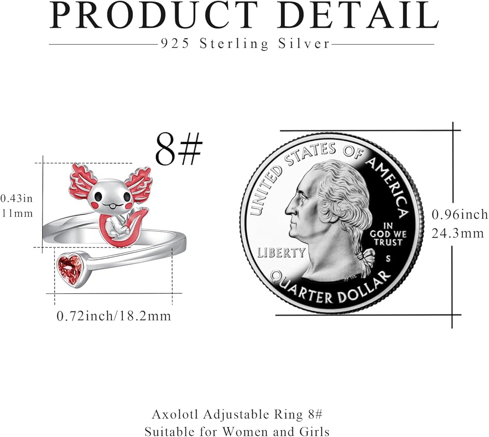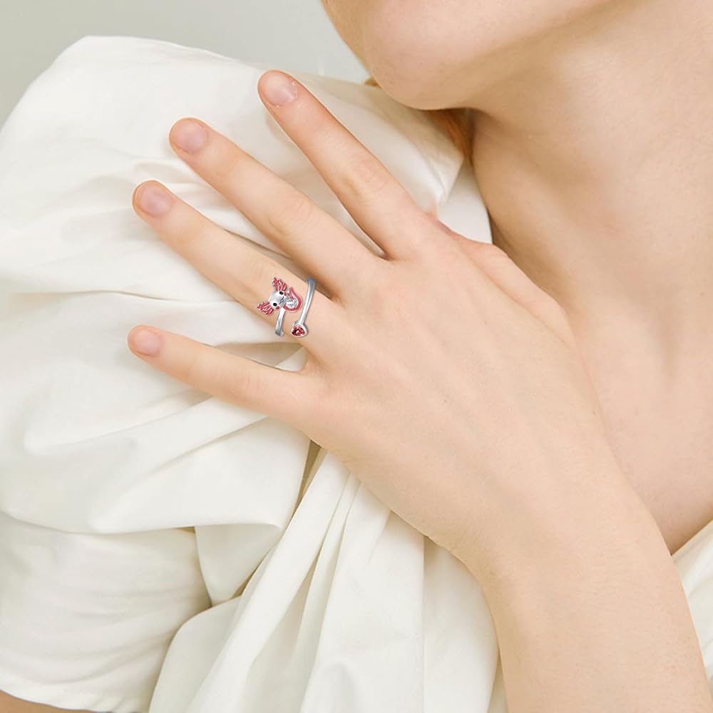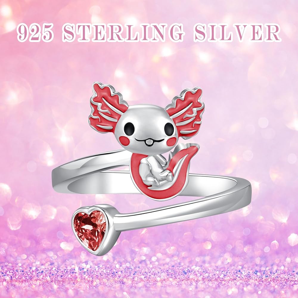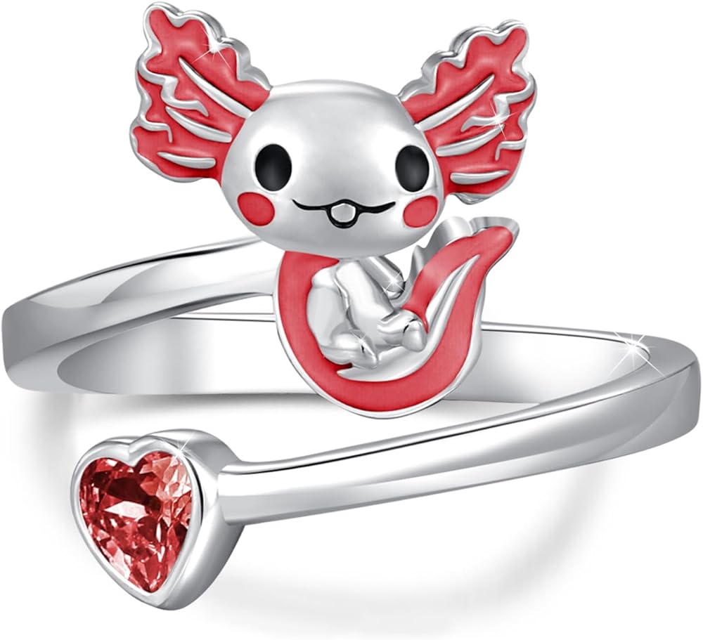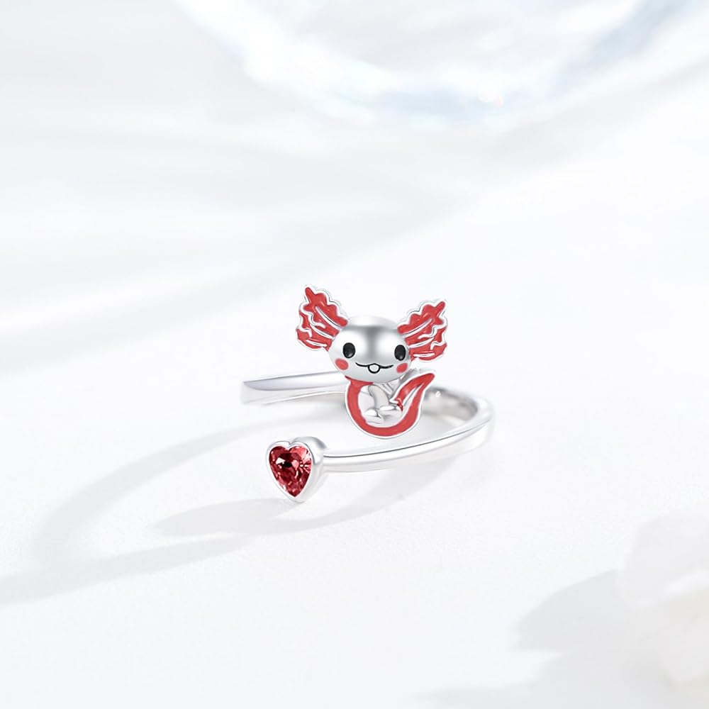 هدايا مجوهرات اكسولوتل - خاتم اكسولوتل للفتيات يأتي مع صندوق هدايا رقيق. خاتم axolotl لطيف للنساء والفتيات والأم والزوجة والابنة والأخوات وابنة الأخت والصديقة في أعياد الميلاد وعيد الحب والكريسماس والهالوين والتخرج وعيد الشكر والذكرى السنوية وما إلى ذلك.