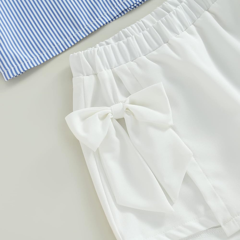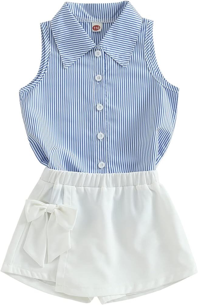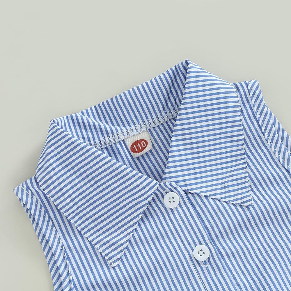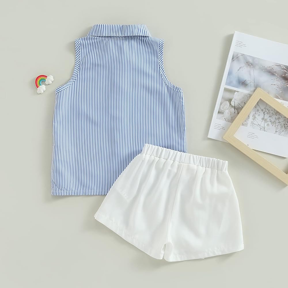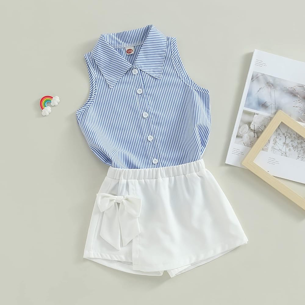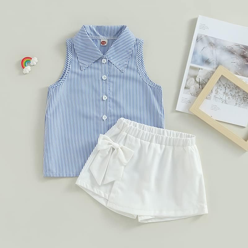 مجموعة ملابس الفتيات الصيفية من Ledy Champswiin قمصان بأزرار وسروال أبيض 2 قطعة ملابس مخططة عصرية للفتيات الصغيرات