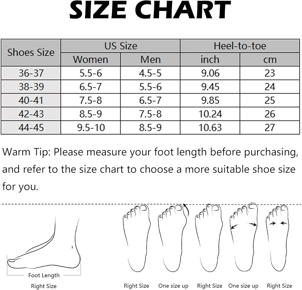 • 😃Please refer to our sizing guide for the best fit and consider ordering one size larger if you have wide feet or a high instep.