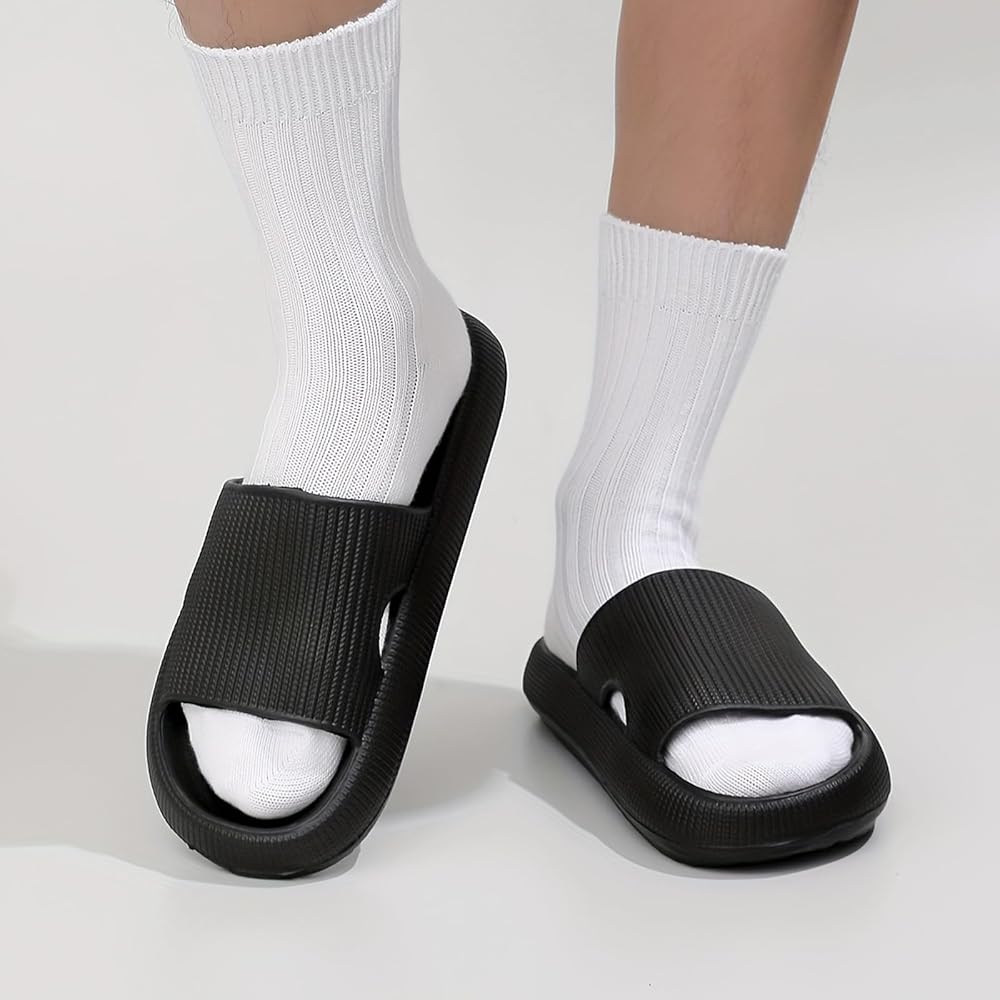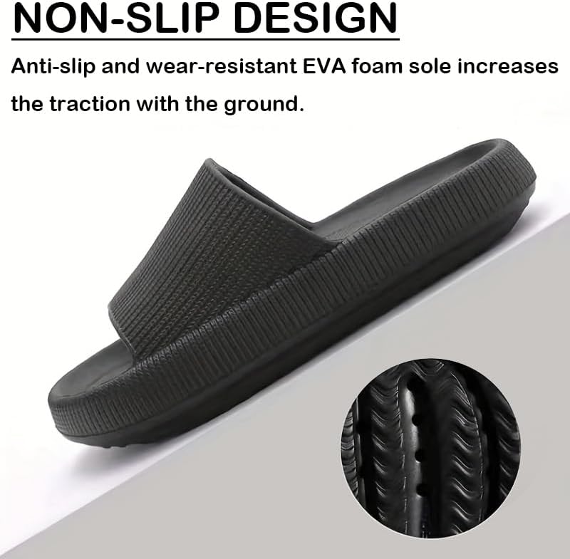 ❀The cushioning soles of platform sandals are made of high elastic EVA material, which is light and soft, giving you a real experience of walking in the cloud. ❀These slide sandals will provide more relief for foot pain.You will have less foot pain when standing for long periods of time and these will keep your heels comfortable. ❀Cloud Slippers are designed with non-slip texture materials to prevent you from slipping.Quick-drying and anti-slip platform slippers can make you walk smoothly, whether in the bathroom or outdoors on a slippery road. ❀Simple casual pillow sandals for men and women, suitable for any occasion, indoor and outdoor ,swimming pool, beach, hotel,bedroom, bathroom,shower room, etc. ❀Please check our house slippers size guide or consult us when purchasing, hoping to help you choose the right size.