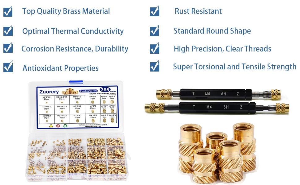 ✅【مادة عالية الجودة】: الحشوات الملولبة مصنوعة من مادة نحاسية عالية الجودة، وتتميز هذه الحشوات الملولبة بالتوصيل الحراري المتميز، ومقاومة التآكل، والمتانة. مع مقاومة درجات الحرارة العالية التي تزيد عن 300 درجة مئوية / 572 درجة فهرنهايت، يمكنها بسهولة تحمل الحرارة العالية المتولدة أثناء ضبط الحرارة البلاستيكية وتتميز بمقاومة ممتازة للكسر والتشوه.