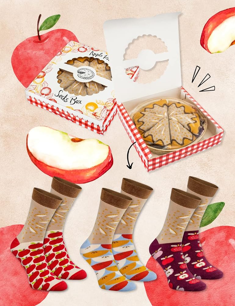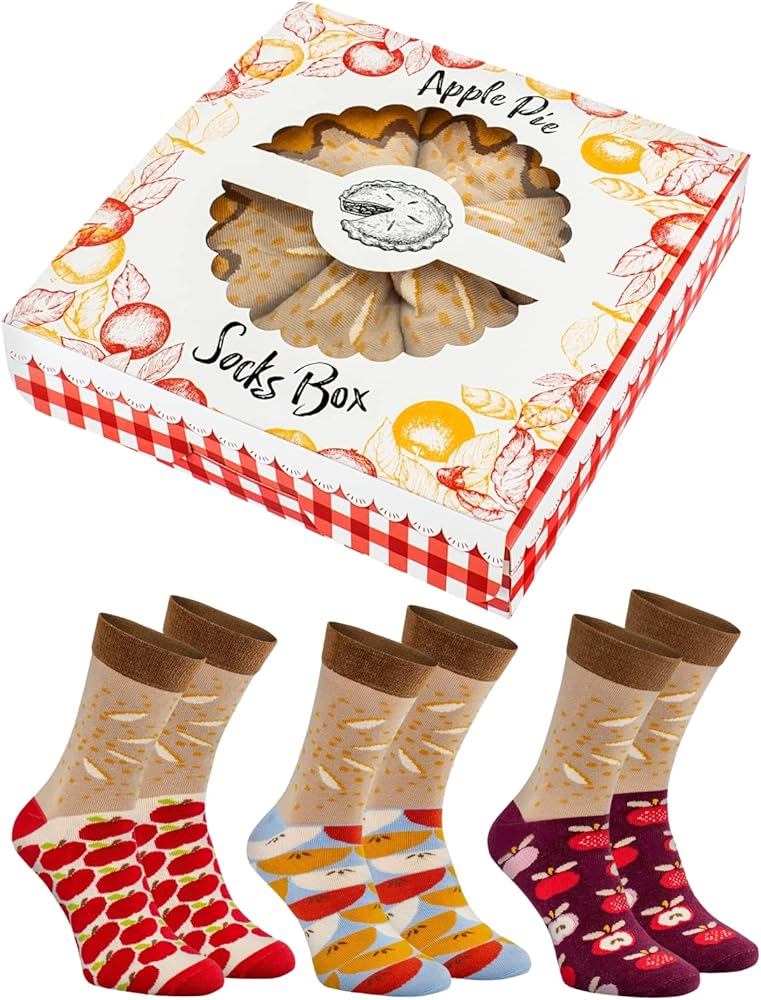 • هدية أصلية للأطعمة - هل تعرف شخصًا يسيل لعابه بمجرد ذكر فطيرة التفاح؟ Sock Apple Pie هي هدية مبهجة لعيد الشكر، أو عيد الجدة، أو عيد الجد، أو بدون أي مناسبة - لأكبر محبي فطائر التفاح! لإنتاج الجوارب، استخدمنا القطن الممشط المعتمد من OEKO-TEX (80%) بالإضافة إلى البولي أميد (17%) والإيلاستين (3%)، مما يضمن متانة المجموعات.