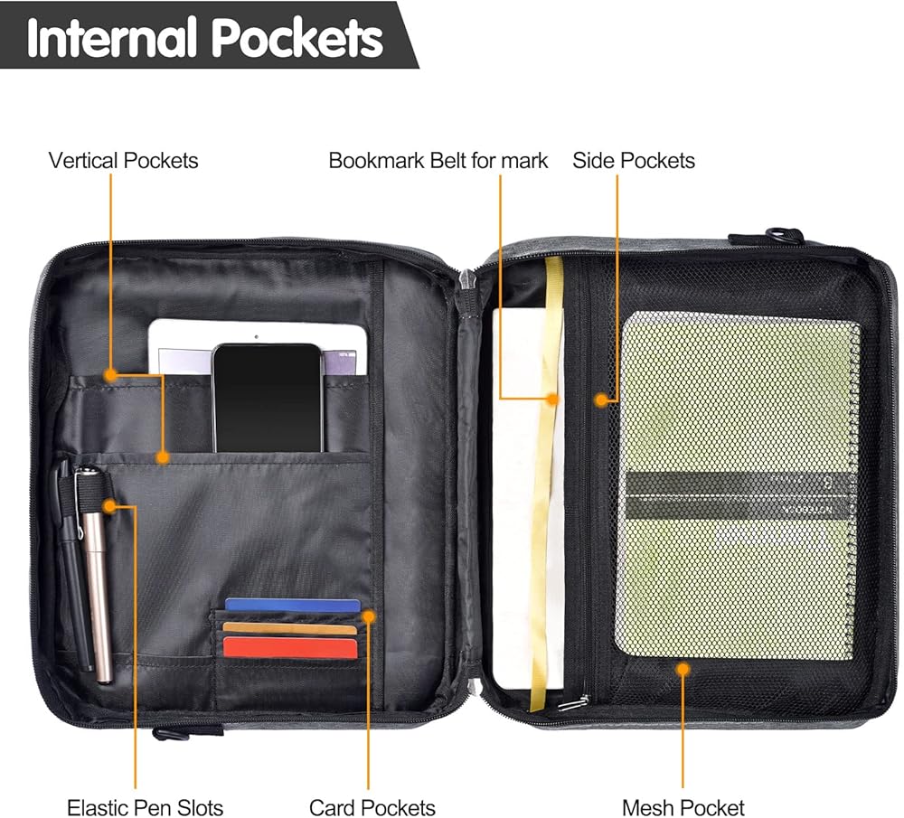 مادة متينة: حقيبة غطاء الكتاب المقدس هذه مصنوعة من مادة البوليستر المتينة. تصميم بمقبض وجيوب بسحاب، خفيف الوزن وقابل للحمل.