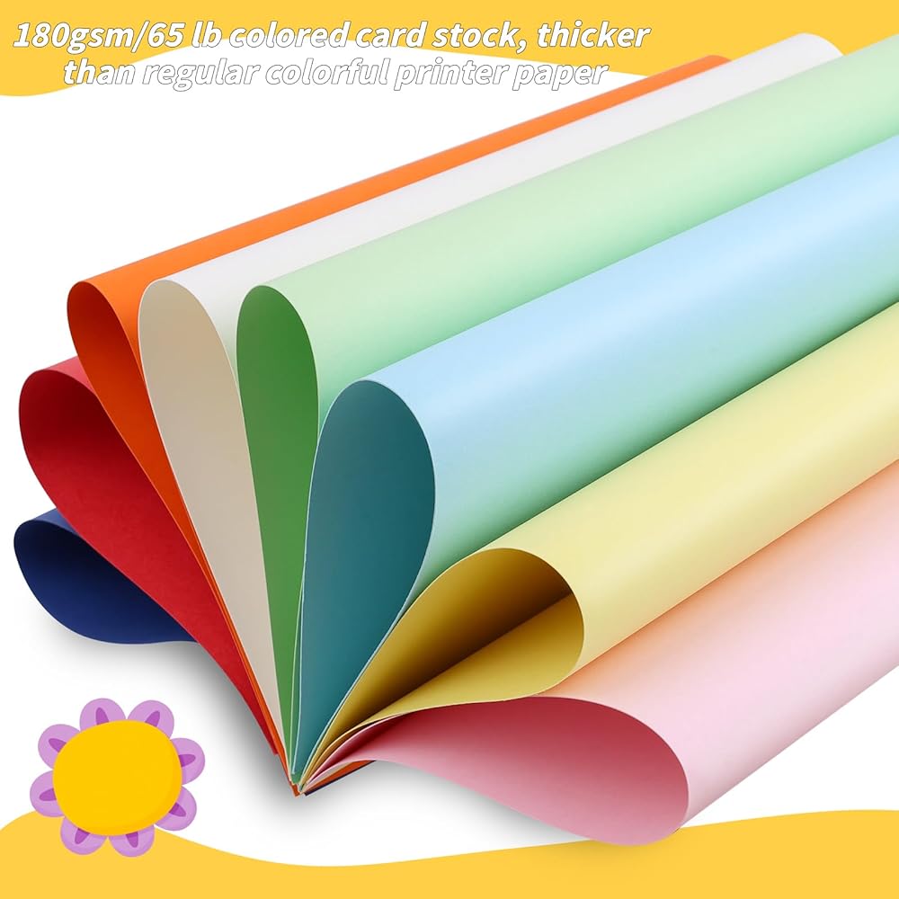 Wide Application:the 180g heavyweight colored cardstocks have a variety of usage, ideal for decorating cards, greeting cards, business and report cards, restaurant and coffee shop menus, scrapbooking, wonderful journal covers, gift boxes, gifts, cardstock earrings, party invitations, wall pictures and so on. train kids brain to identify colors, create more fun with kids in their childhood. to be craft accessories for school education games for teachers. card making supplies for craft lovers