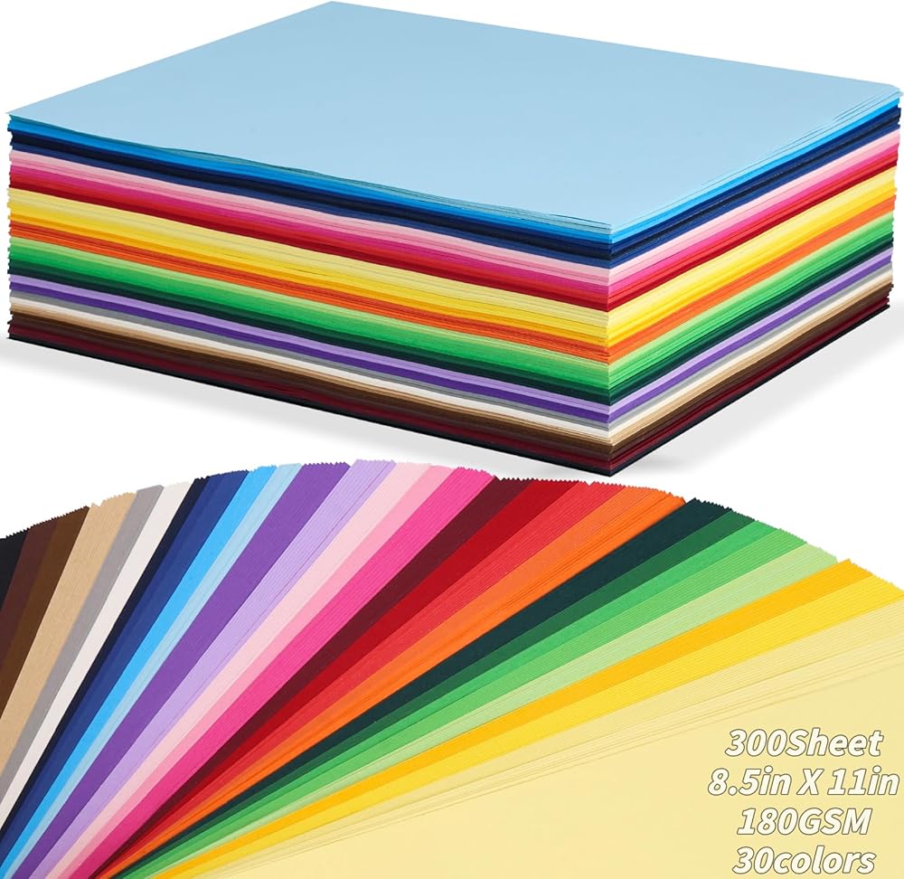 UZLU Colored Cardstock Paper Bulk 300 sheets 8.5 x 11", 30 Assorted Colors Construction Paper,180 GSM Card Stock Printer Paper for Scrapbooking, Certificates, Invitations, Card Making, DIY Crafts