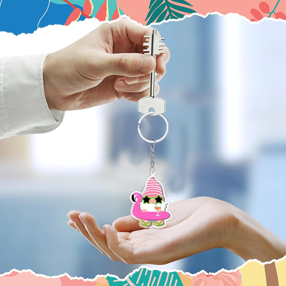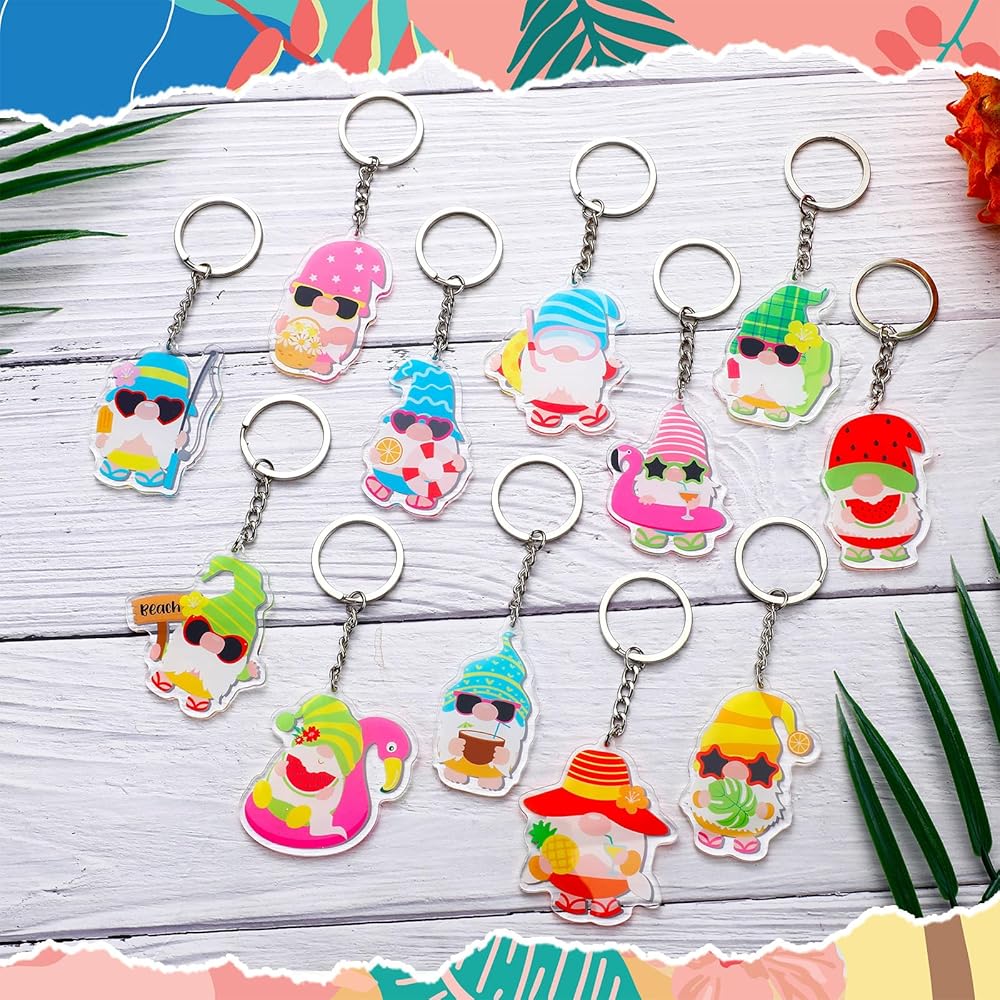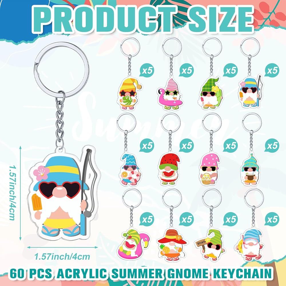 Ideal Summer Holiday Gifts: our charming summer gnome key chains are cute and sweet summer holiday gifts; With an abundant quantity and various styles to choose from, you can spread summer cheer among everyone you know; They're delightful, bright and wonderfully adorable, ideal as summer decorations or key rings