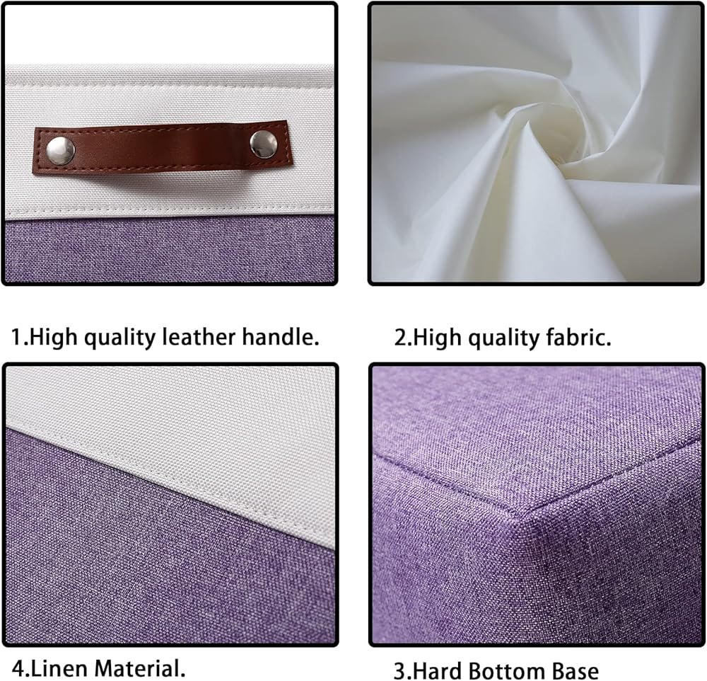 صناديق التنظيم مصنوعة من الكتان عالي الجودة ومصنوعة من قماش سميك وتحافظ على شكلها حتى عندما تكون فارغة، مادة متينة وعالية الجودة تجعل سلة التخزين هذه تدوم لفترة طويلة، فهي قادرة على حمل الأشياء، السلال المبطنة بنسيج الموسلين البيج الرفيع، سهلة التنظيف، فقط امسحها بإسفنجة أو قطعة قماش مبللة.